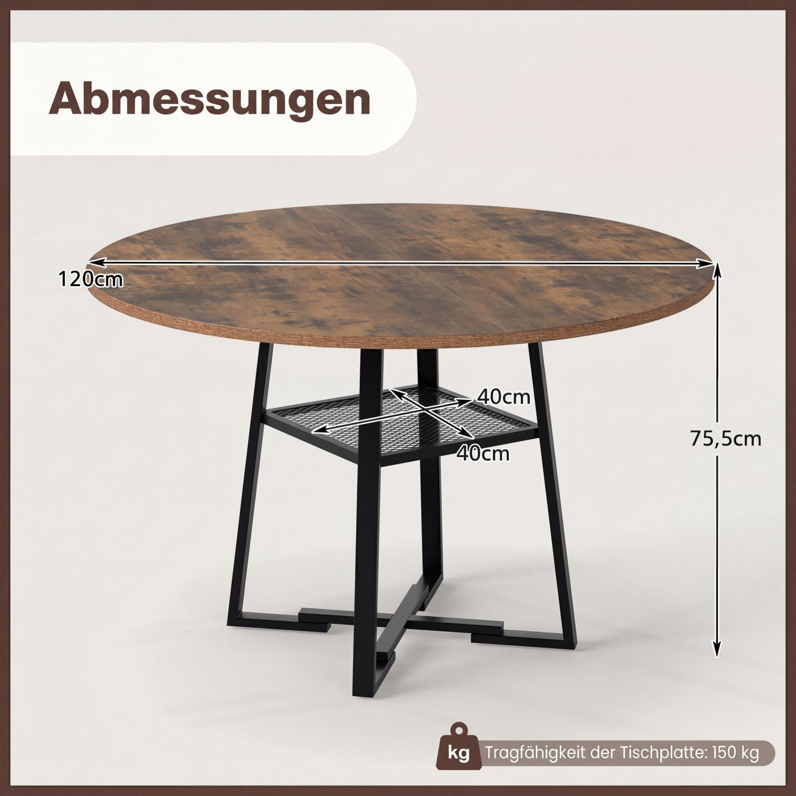 Apvalus valgomojo stalas su atvira lentyna Ø120 cm (Kaimiška ruda)