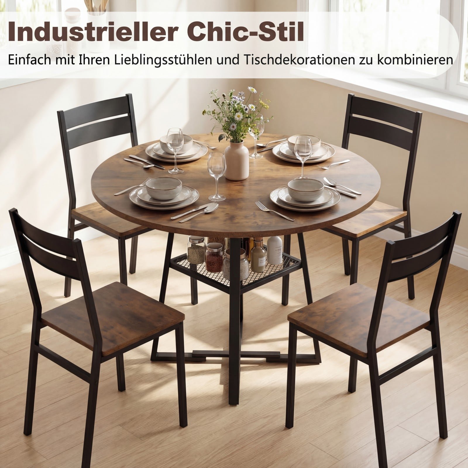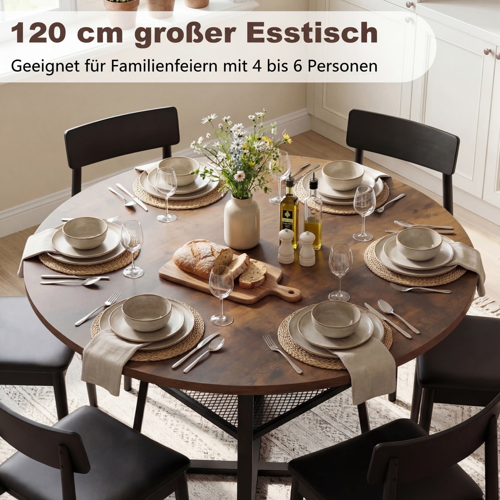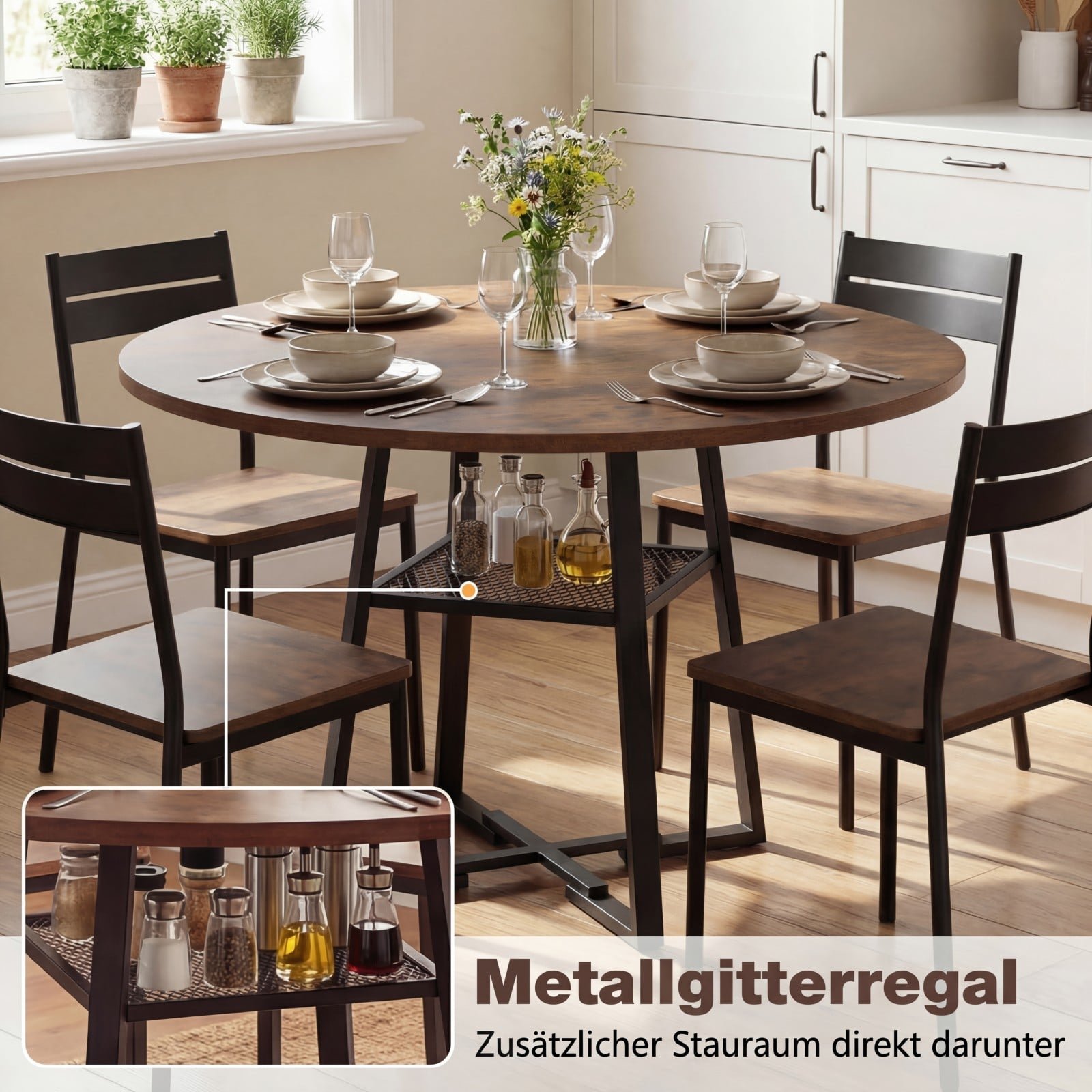 Šis apvalus valgomojo stalas taps stilingu jūsų valgomojo erdvės akcentu ir puikiu susibūrimų centru. Patogiai talpinantis 4–6 asmenis, jis puikiai tinka kasdieniams valgiams, ramiems pusryčiams ar jaukiems susibūrimams su šeima ir draugais. Po stalviršiu integruota atvira lentyna padeda palaikyti tvarką ir visada turėti po ranka reikalingus daiktus.