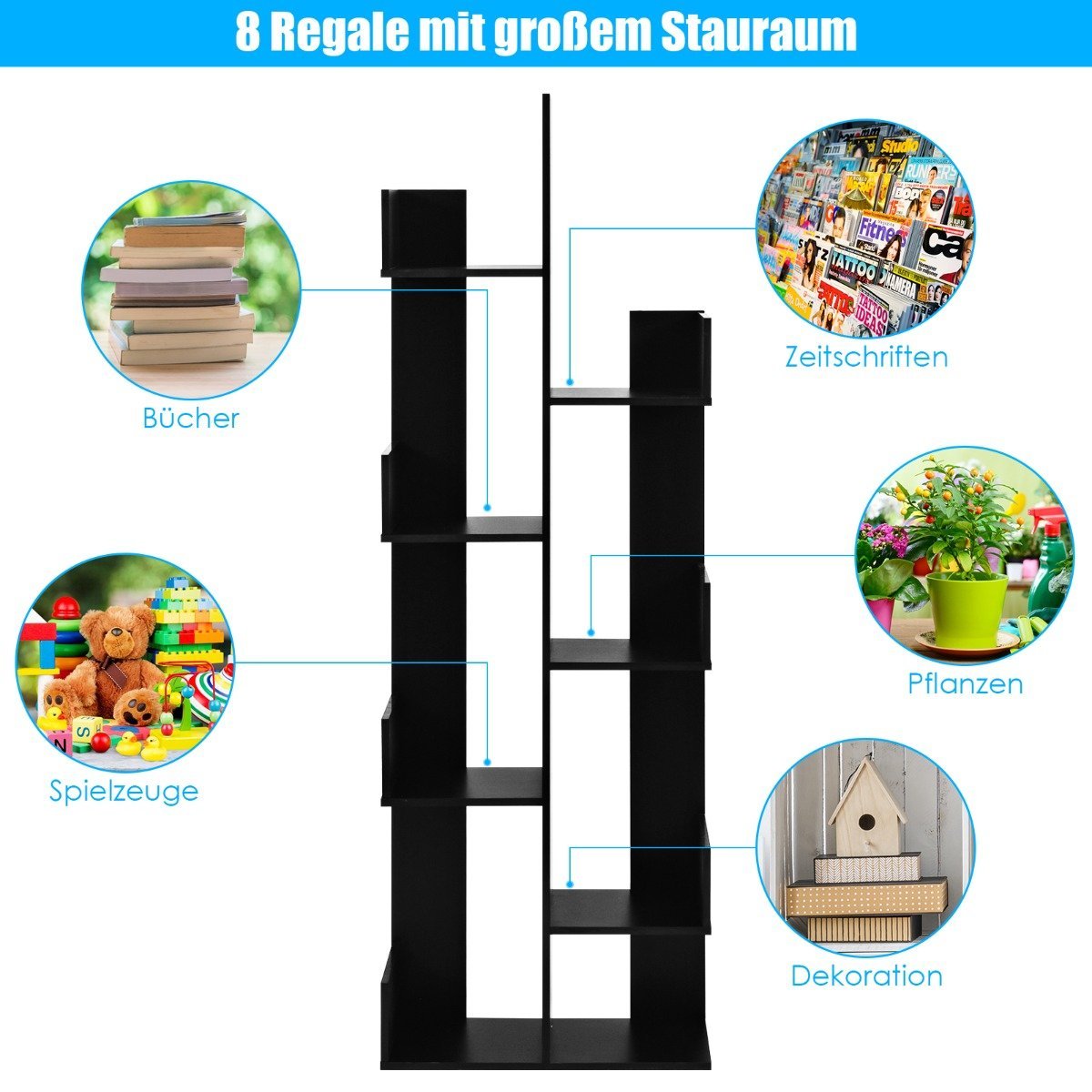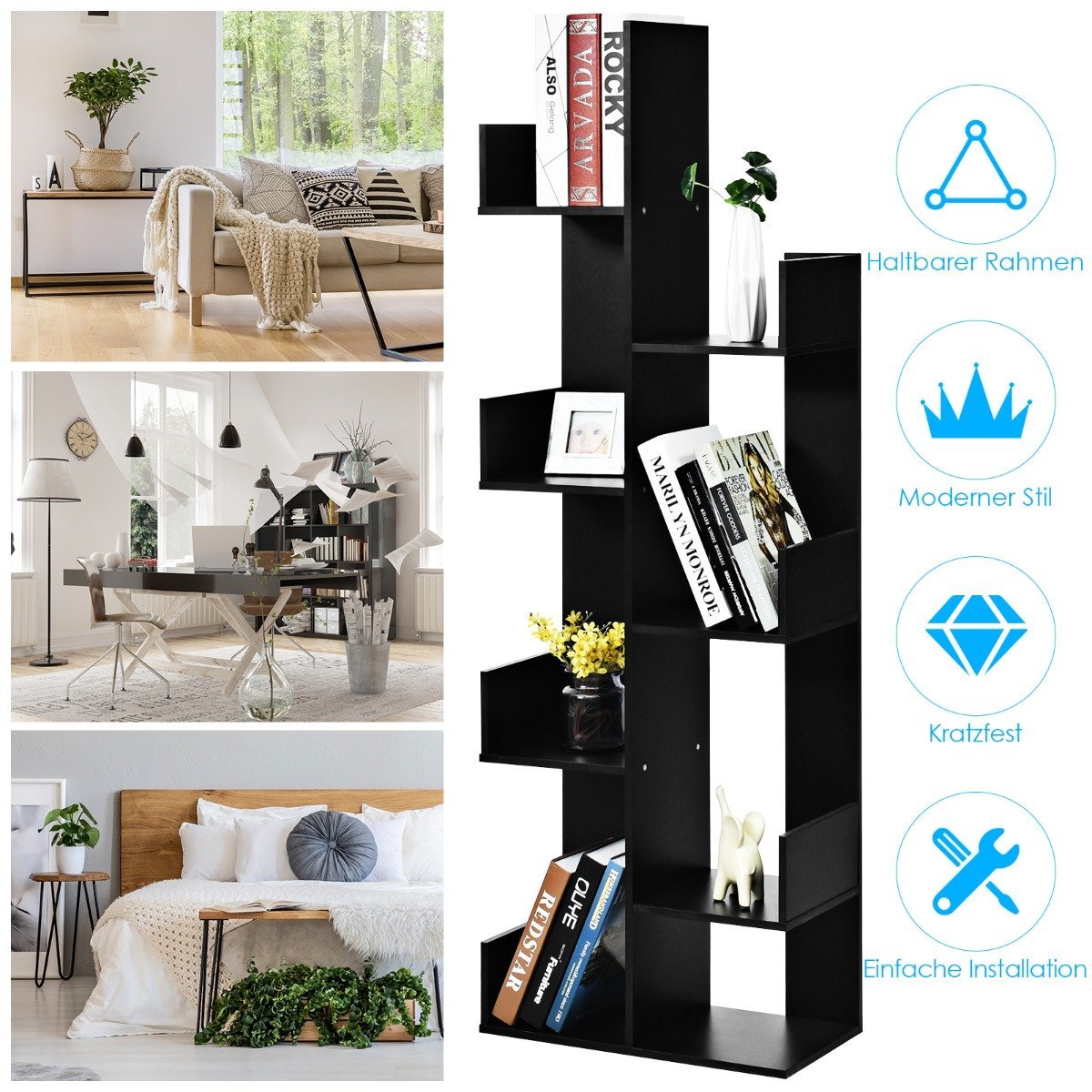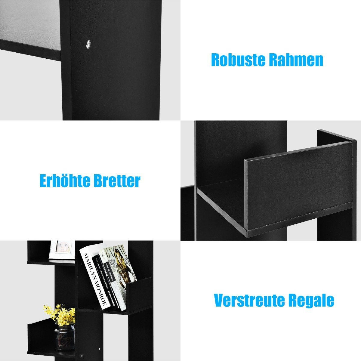 Aštuonių atvirų lentynų knygų lentyna (Juoda)