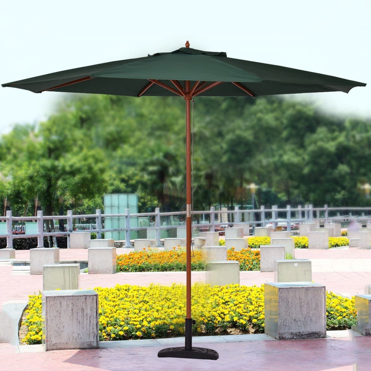 - Didelis, 2,7 m skersmens skėtis suteikia daug pavėsio.