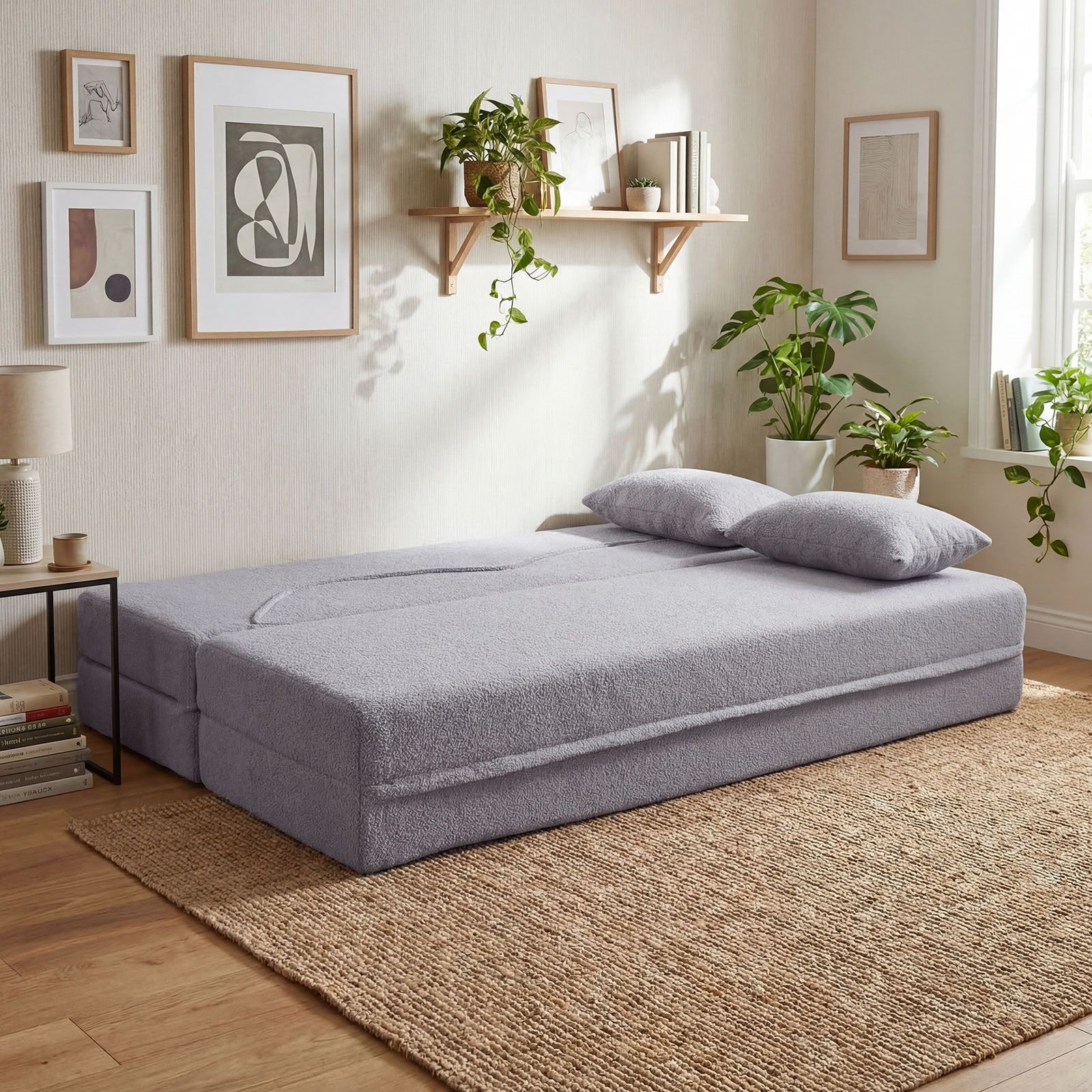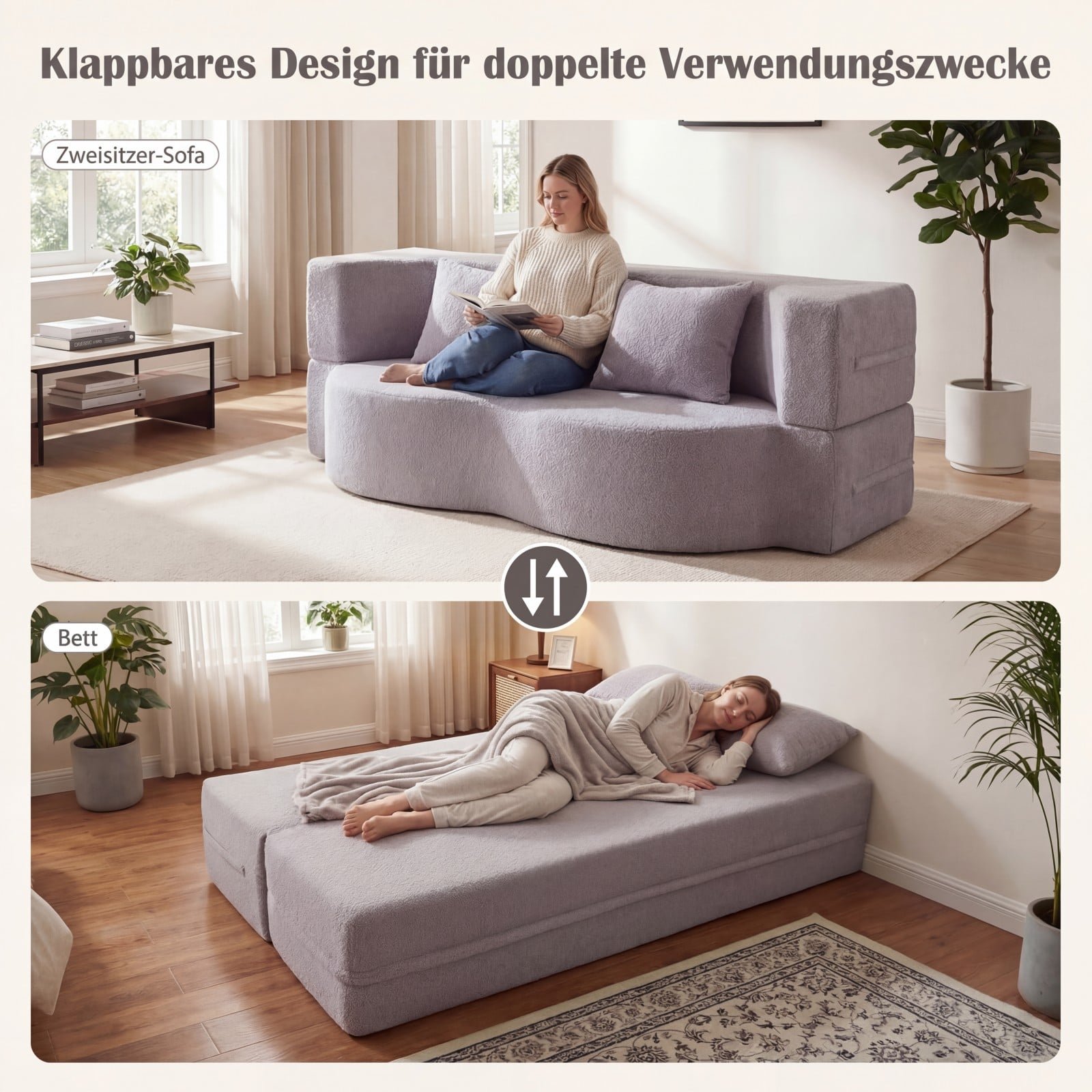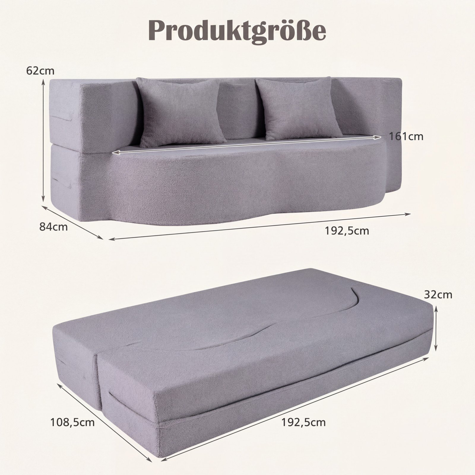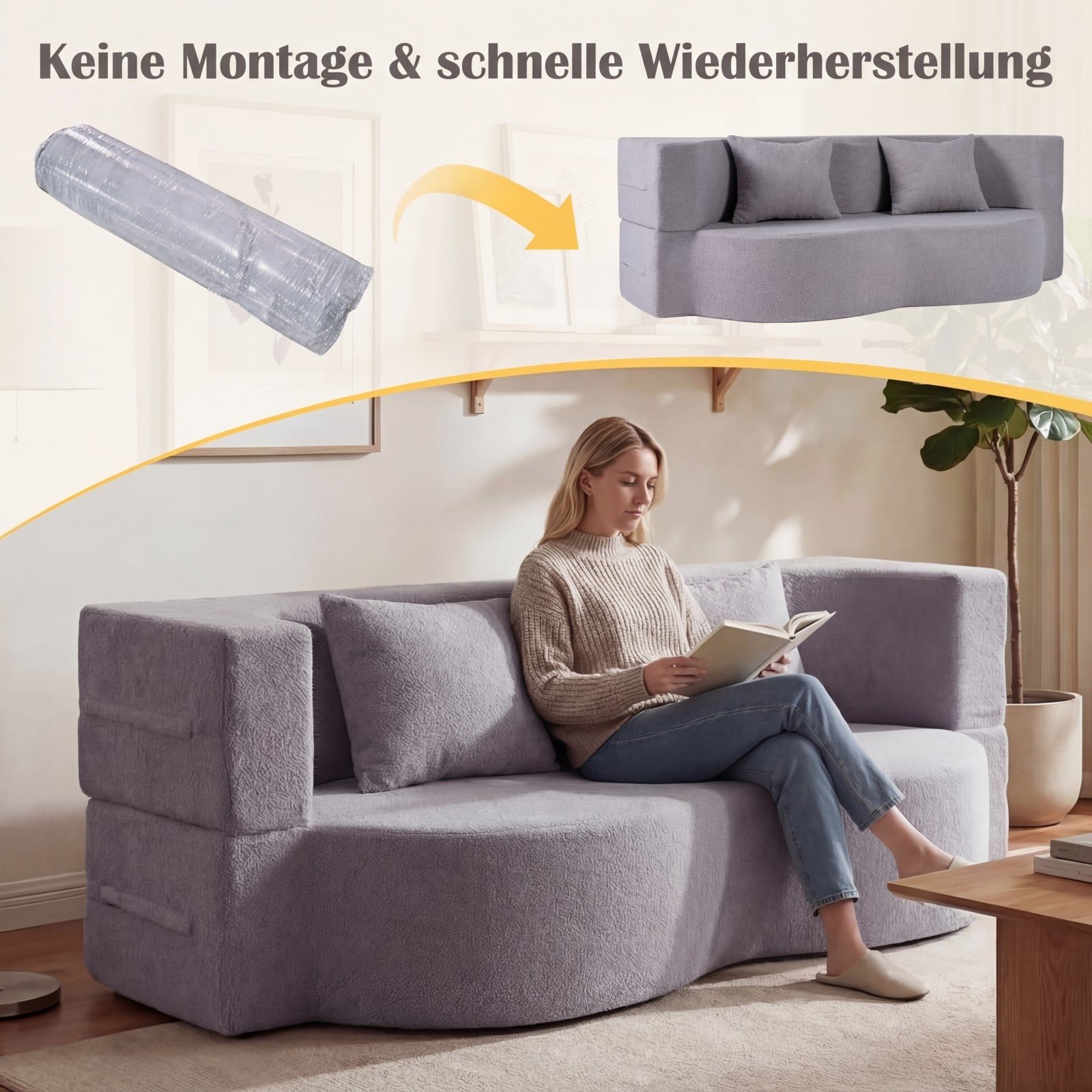 Atlenkiama sofa-lova su Teddy-Fleece apmušalu 2-in-1 (Pilka)