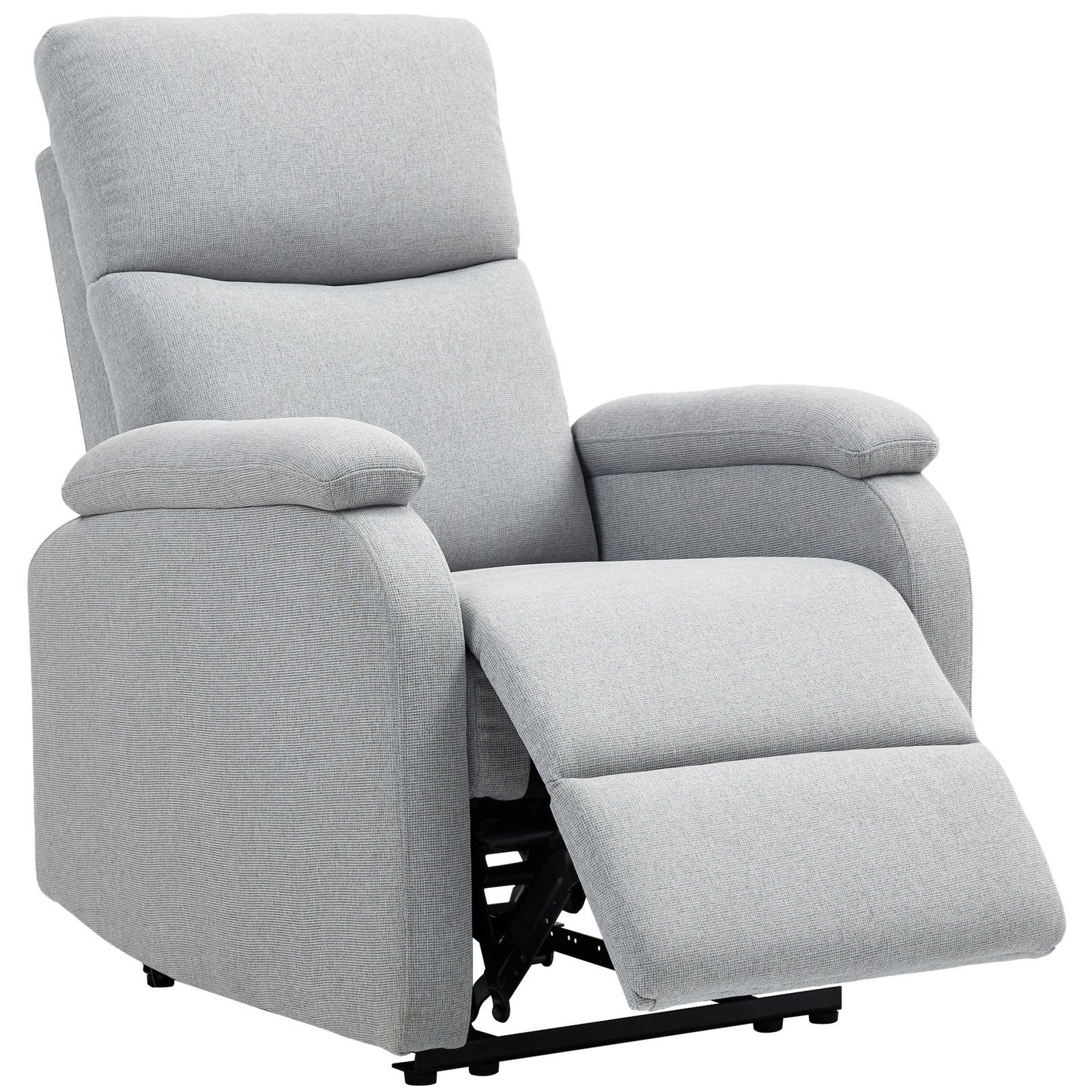✔ Televizoriaus krėslo atlošas atlenkiamas iki 60° rankiniu būdu reguliuojant sagtimi. Kojų atramą galima reguliuoti kulnais/kojomis