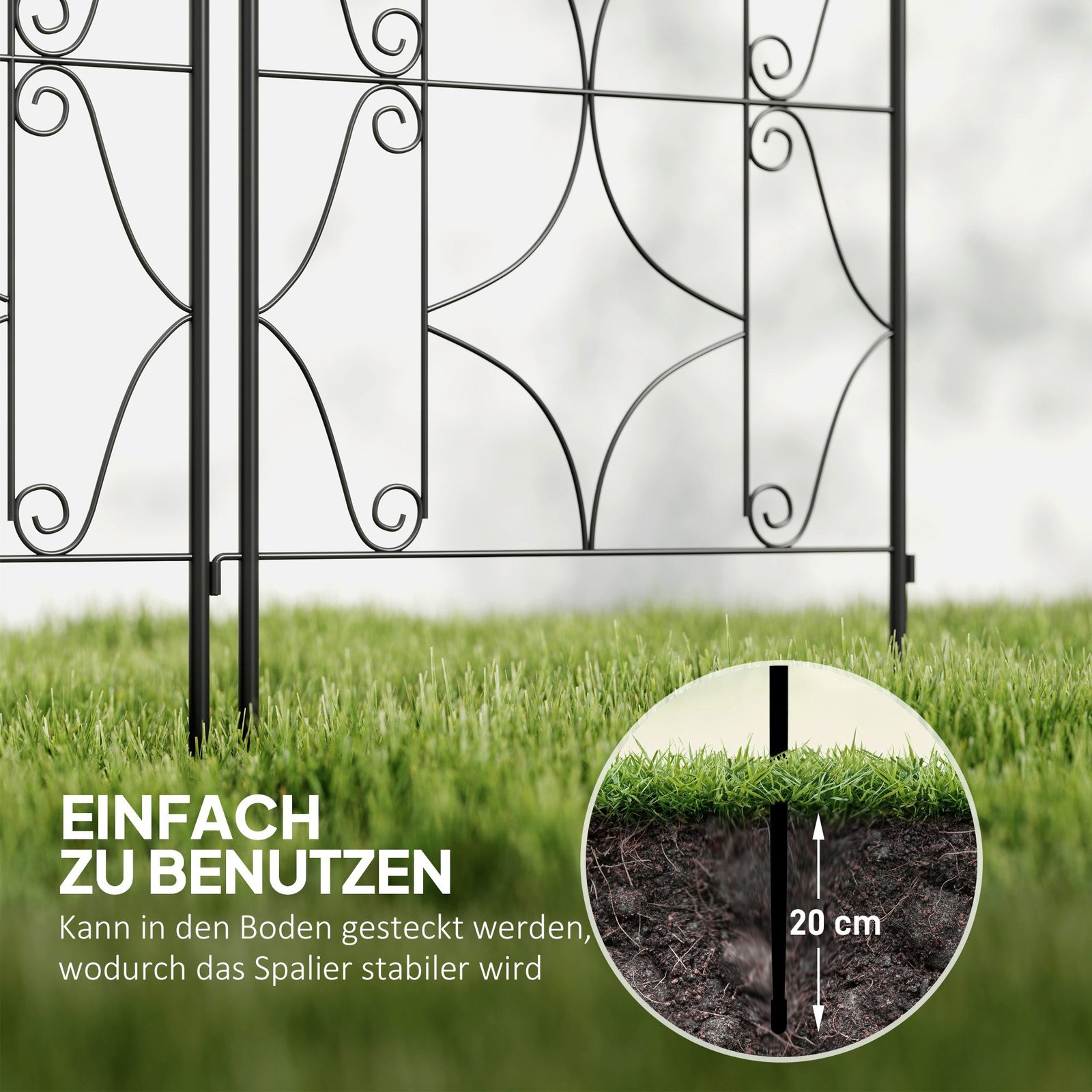 Atnaujinkite savo sodą su rožių atrama! Ši rožių atrama suteikia daug vietos vijokliniams augalams ir saugų palaikymą net vėjuotu oru. Su nerūdijančiu metaliniu rėmu ir patraukliais netaisyklingais raštais, ši rožių atrama sujungia funkcionalų augalų palaikymą su dekoratyvine apsauga nuo smalsių žvilgsnių. Puikiai tinka, kad jūsų sodas taptų elegantiškas.