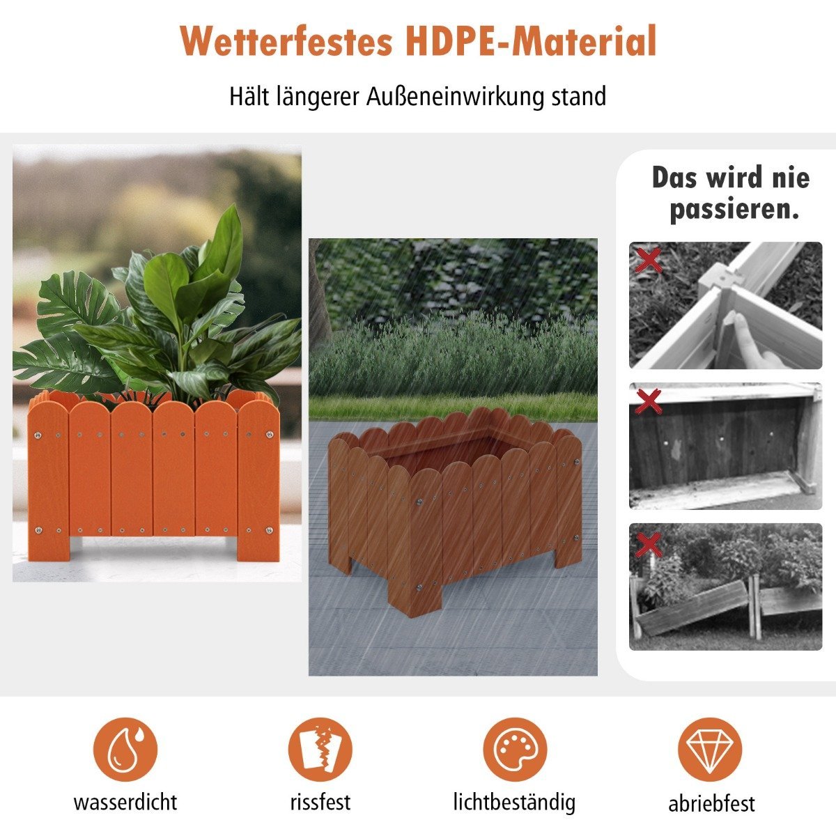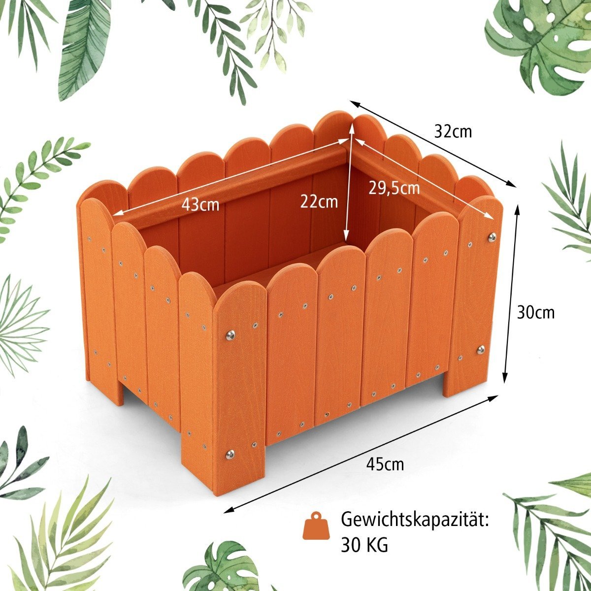 Atsparūs orams stačiakampiai sodo gėlynai 45 x 32 x 30 cm (Oranžinė)