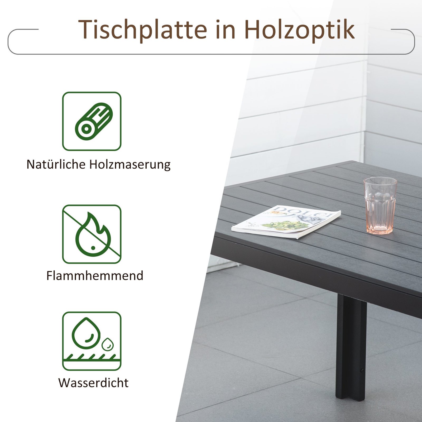 Atsparus oro sąlygoms lauko valgomojo stalas su medžio imitacijos WPC stalviršiu, 190×84,5×72 cm