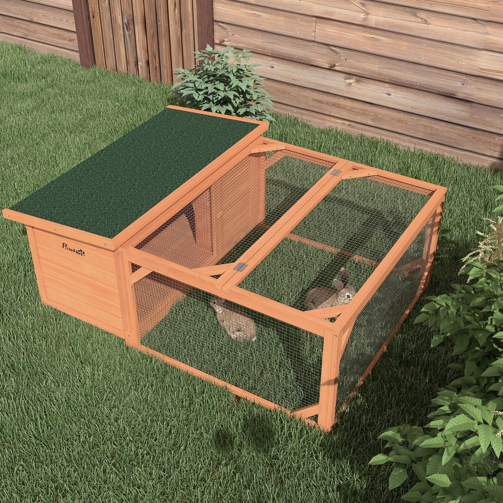 ✔ Atspari oro sąlygoms eglės medienos medžiaga daro šį nykštukinių triušių narvą puikiu prieglobsčiu