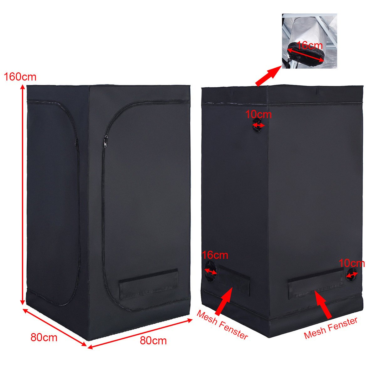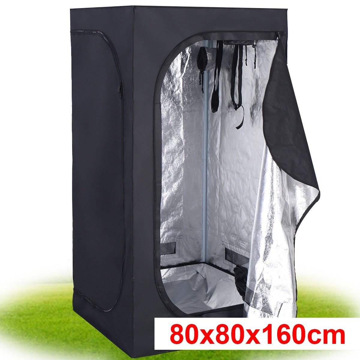Augalų auginimo palapinė su užtrauktuku 80 x 80 x 160 cm (Juoda)