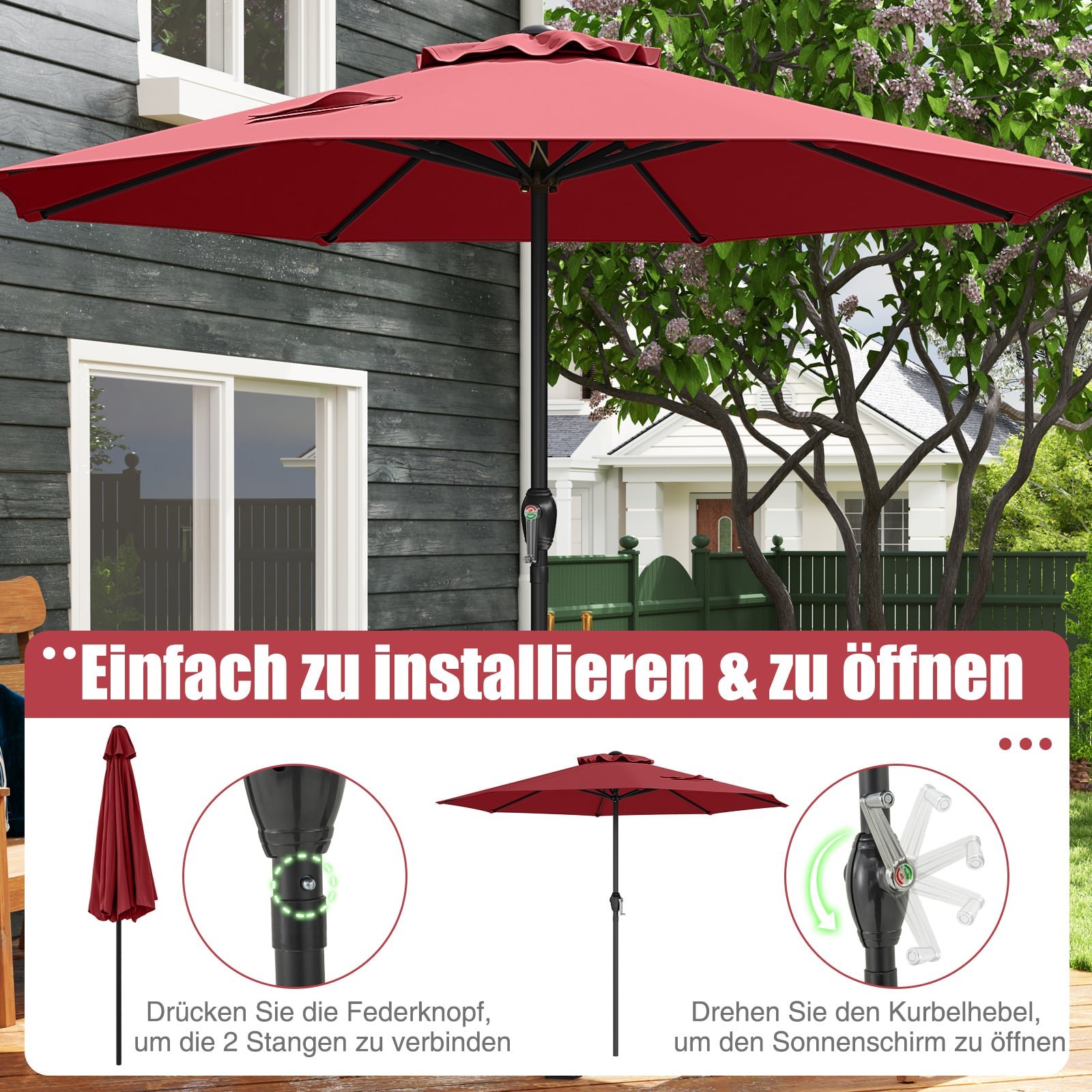 auko skėtis su rankena ir ventiliacine anga Ø 260 cm (Vyno raudona)