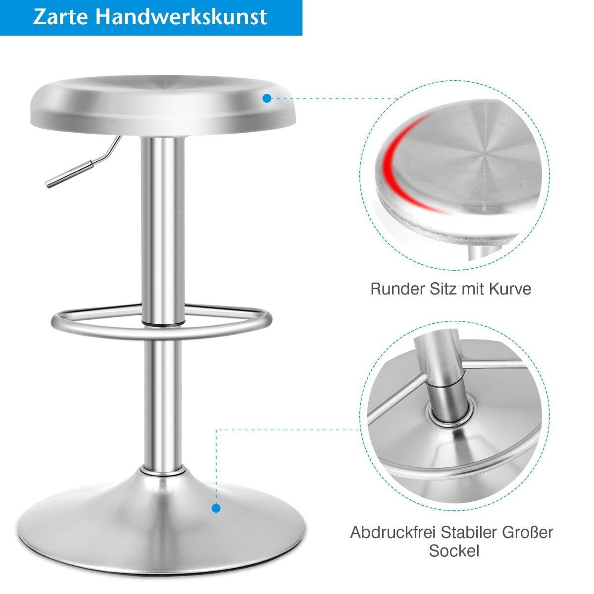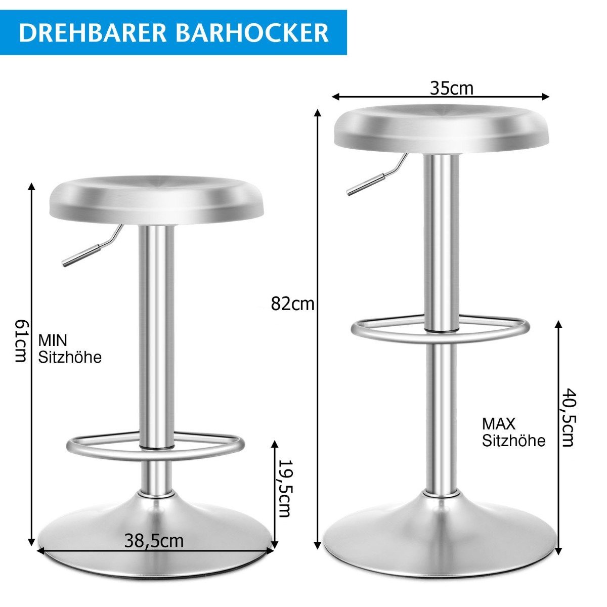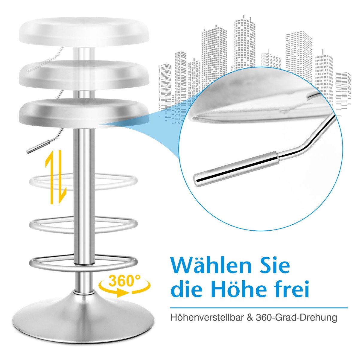 Aukščio reguliuojama sukamoji baro kėdė su atrama kojoms (Sidabrinė)