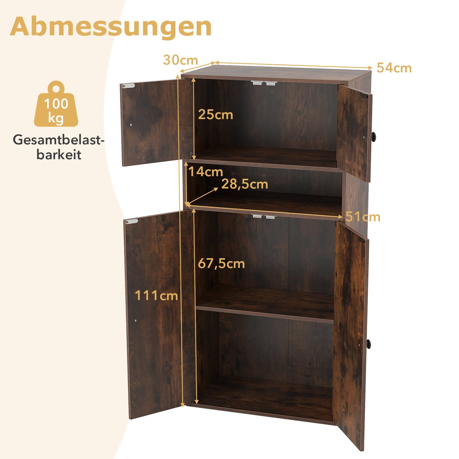 - Bendri matmenys (I x P x A): 54 x 30 x 111 cm