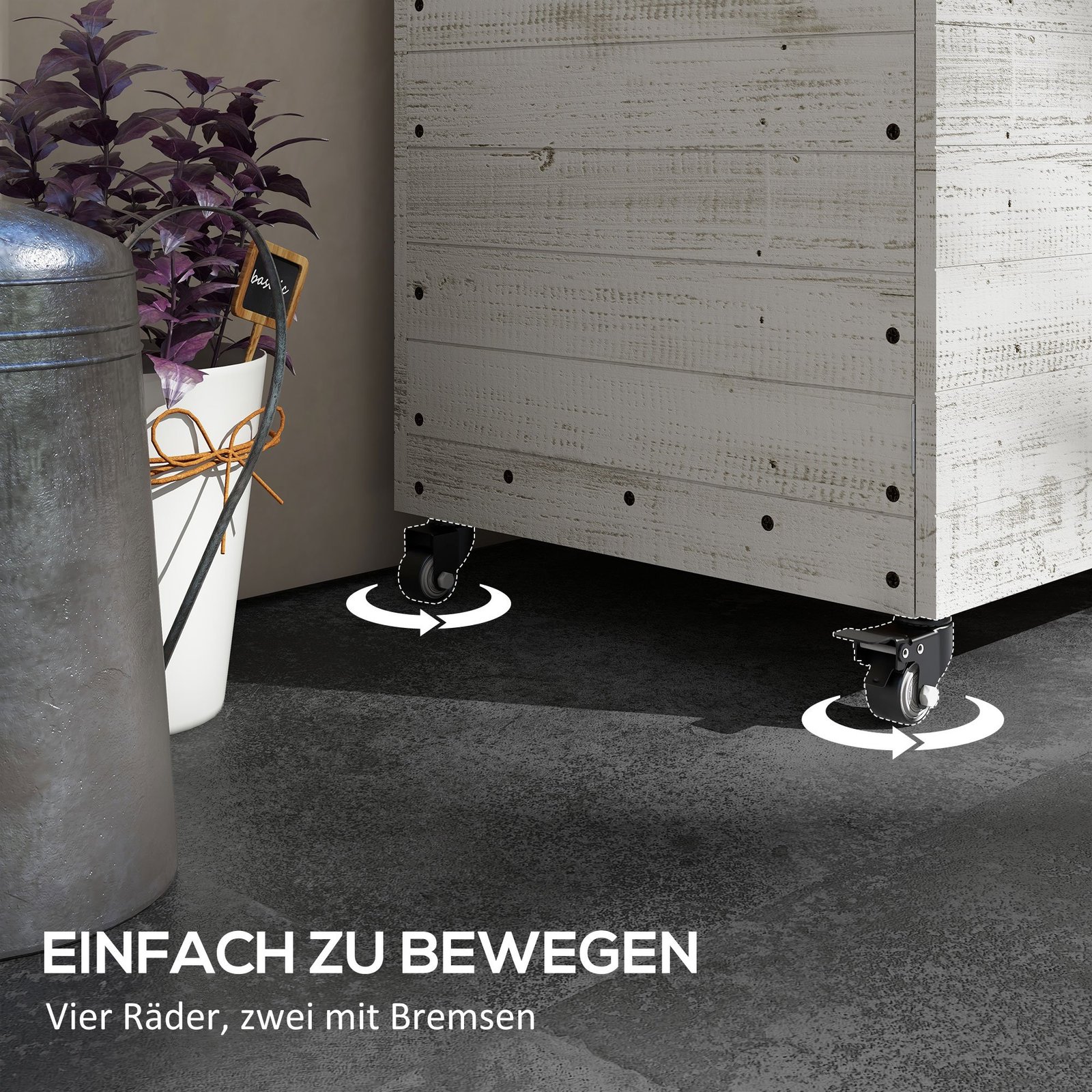 Suteikite savo sodui naują veidą su šiuo rafinuotu pakeltu gėlynu. Senovinio stiliaus dizainas su apvaliais durų rankenėliais suteikia jūsų lauko erdvei įdomų akcentą, o praktiška spintelė užtikrina saugų jūsų sodo įrankių laikymą. Keturi ratukai suteikia nevaržomą judėjimo laisvę. Paaukštinta balkono gėlyno konstrukcija idealiai tinka jūsų nugarai – atsisveikinkite su varginančiu lankstymusi!