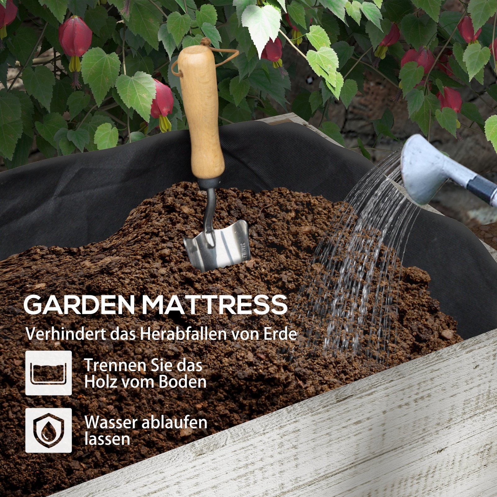 ✔ Vilnos pamušalas gėlių dėžėje, siekiant išvengti dirvožemio erozijos