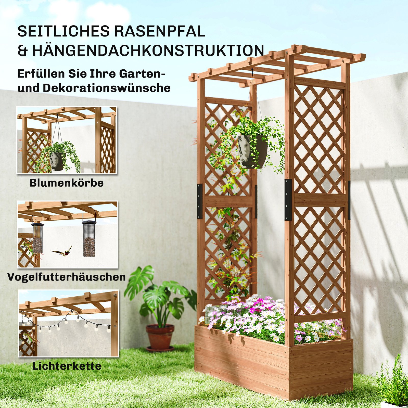 Trūksta privatumo ir per mažai sodo erdvės? Jūsų sodas atrodo slegiamas ir negalite tinkamai mėgautis ramiomis akimirkomis? Šis gėlių vazonas su grotelėmis pavers jūsų terasą privačia žalia oaze. Šis erdvus pakeltas žolelių lysvė sukuria tankią žalią oazę su dekoratyviniu lanku apšvietimui, idealiai tinkančiu sluoksniuotai sodo aplinkai ir atpalaiduojančioms šeimos akimirkoms.