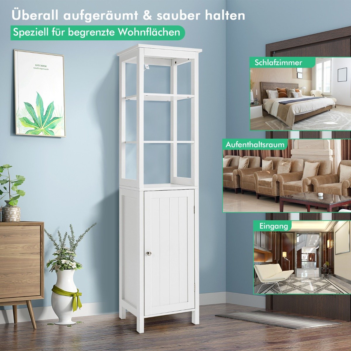 Aukšta siaura spintelė su 3 padėčių lentyna (Balta)
