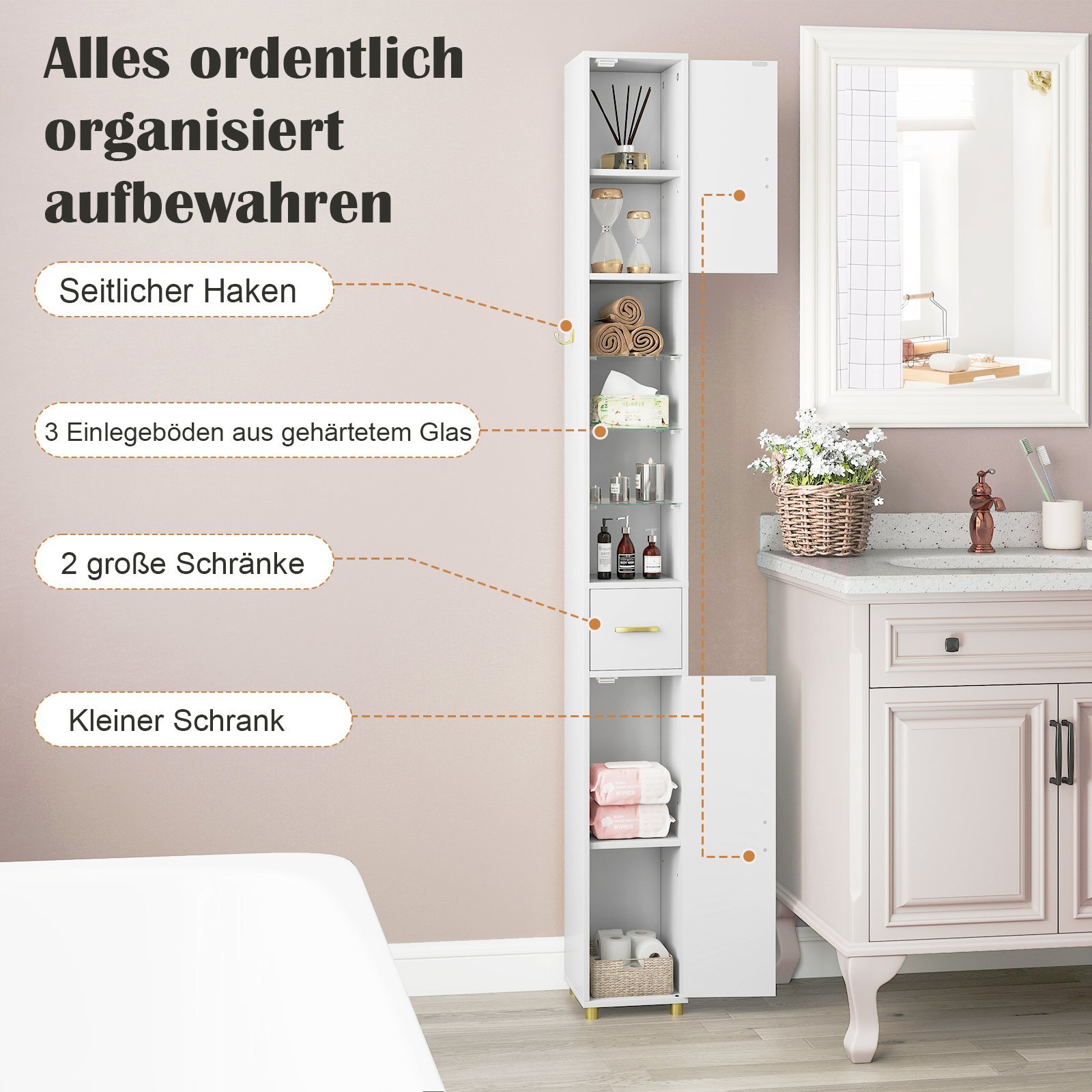 Aukšta siaura spintelė su trijų spalvų apšvietimu ir reguliuojamomis lentynomis (Balta)