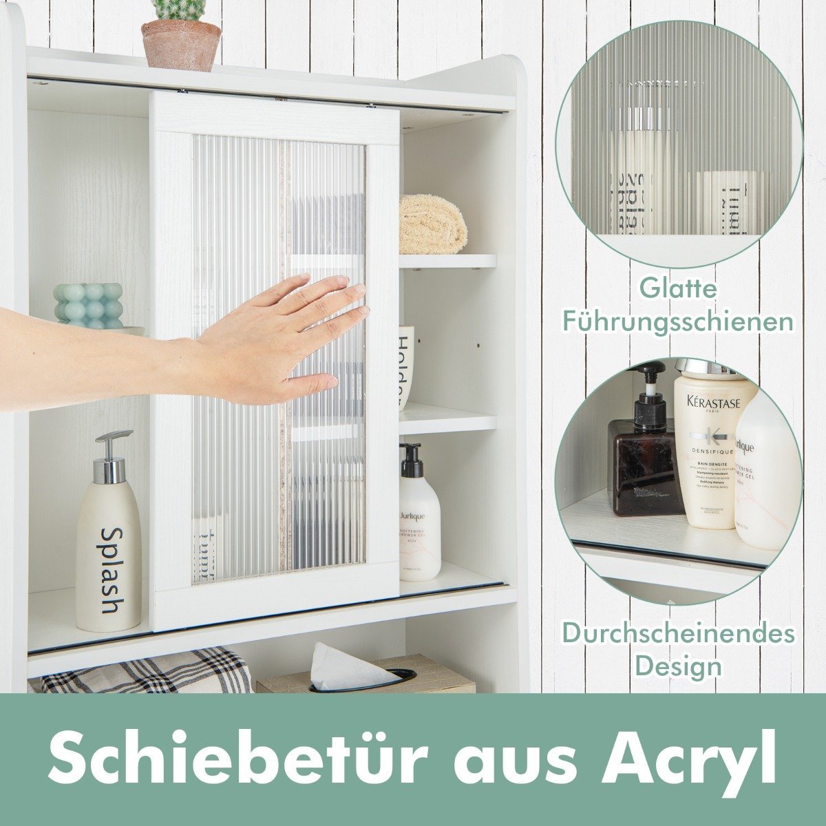 - Slystančios akrilinės durys su pusiau permatomu dizainu leidžia lengvai pasiekti daiktus ir suteikia elegancijos.