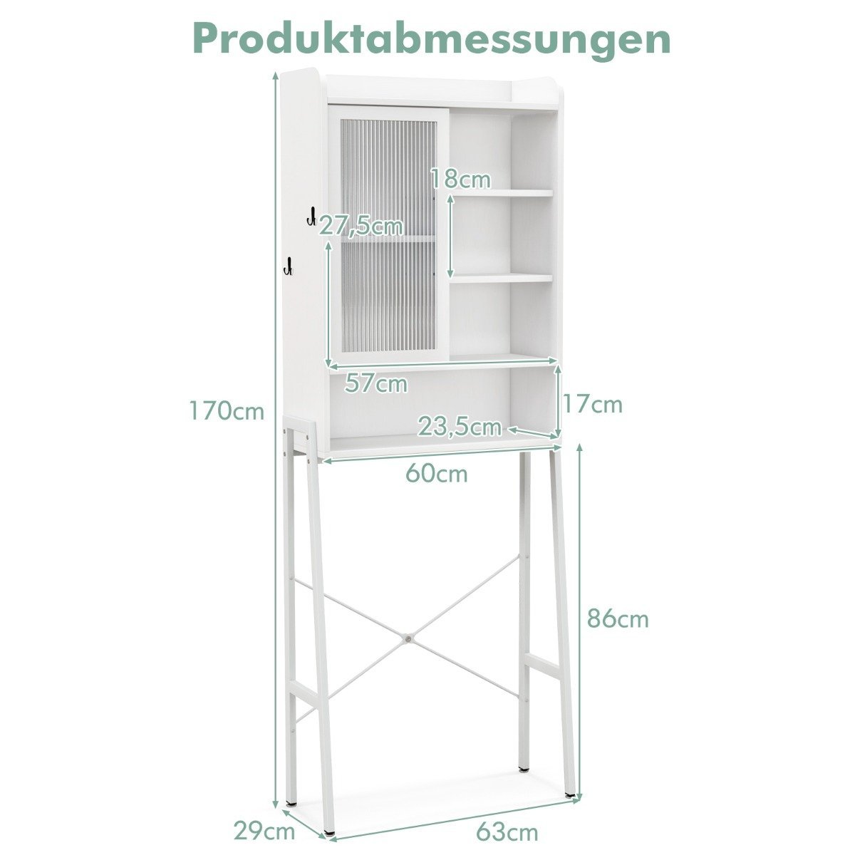 - Bendri matmenys: 63 x 29 x 170 cm (Plotis x Gylis x Aukštis)