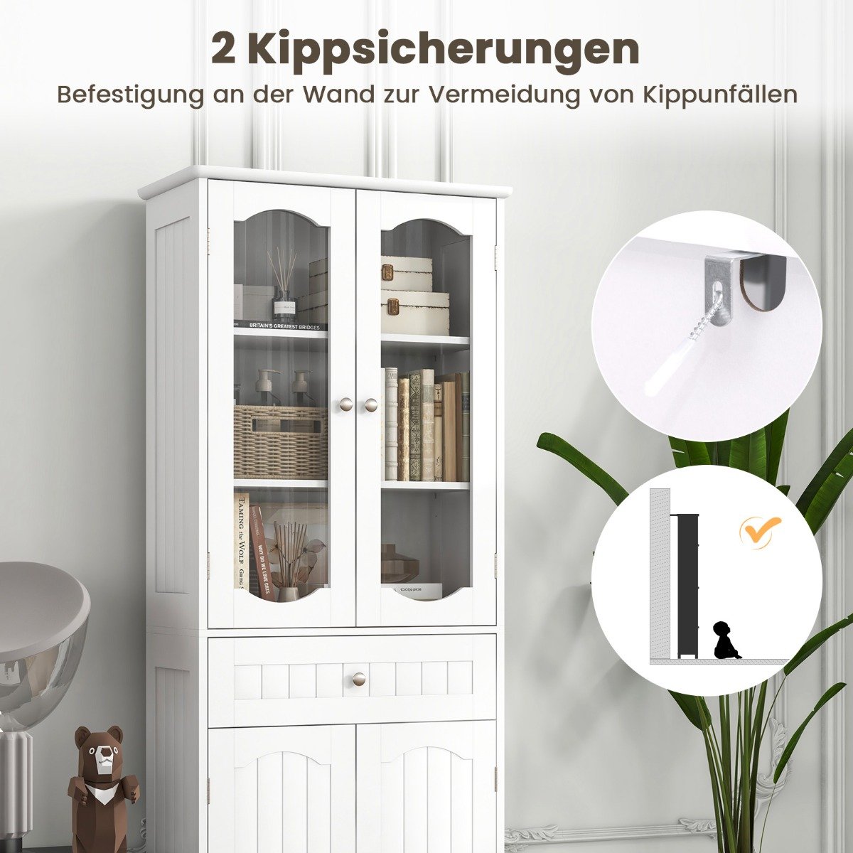 Aukšta vonios spintelė su 4 durelėmis ir stalčiumi (Balta)
