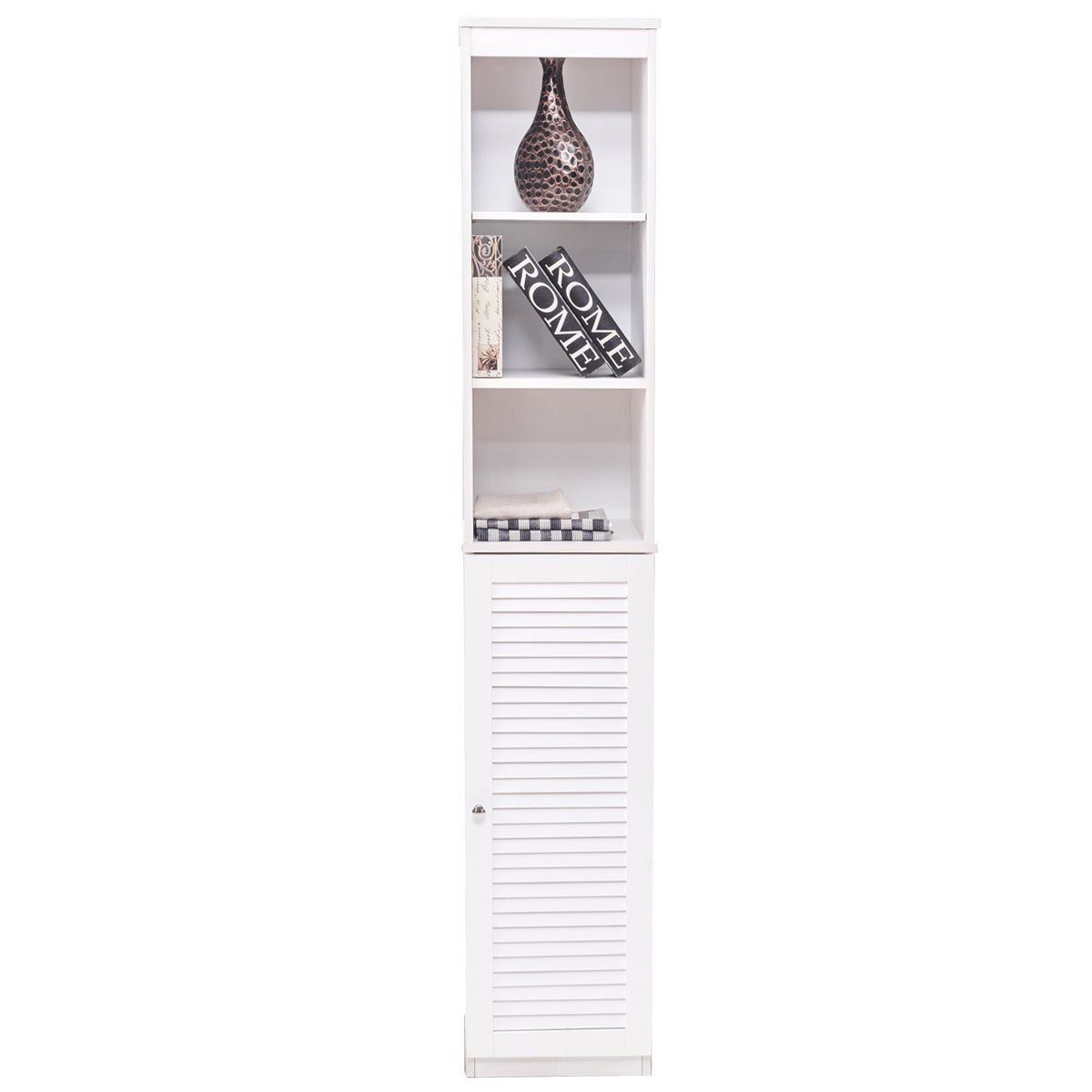 Aukšta vonios spintelė su lentynomis (Balta)