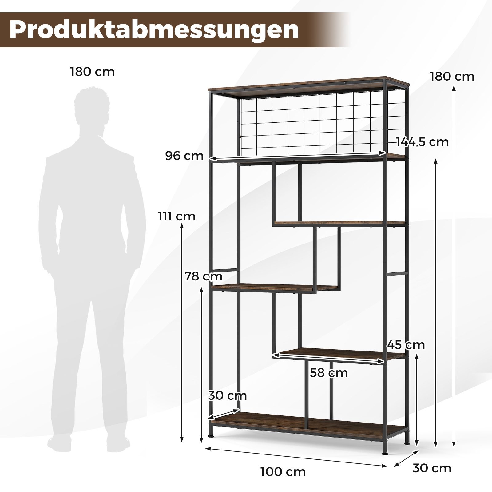 - Bendri matmenys: 100 x 30 x 180 cm (Ilgis x Plotis x Aukštis)