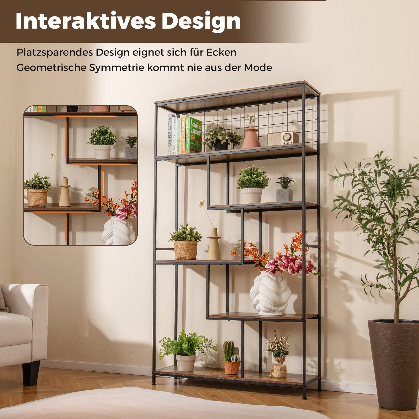- Suteikia daug vietos knygoms, dekoracijoms ar augalams laikyti.