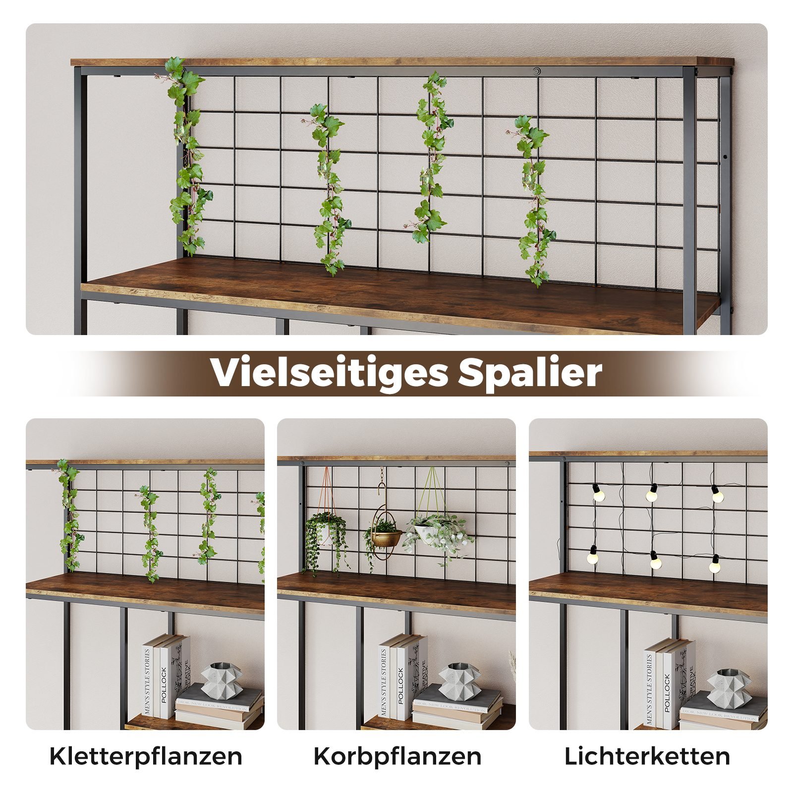 - Tvirtas metalinis rėmas ir atraminis tinklas, tinkamas augalams ar dekoracijoms.