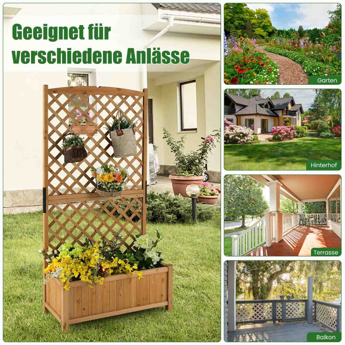 Praturtinkite savo lauko erdvę šiuo elegantišku ir funkcionaliu aukštu gėlynu. Jo dizainas puikiai tinka įvairioms augalų rūšims – nuo žydinčių gėlių iki daržovių – ir suteikia natūralios gamtos prisilietimą.