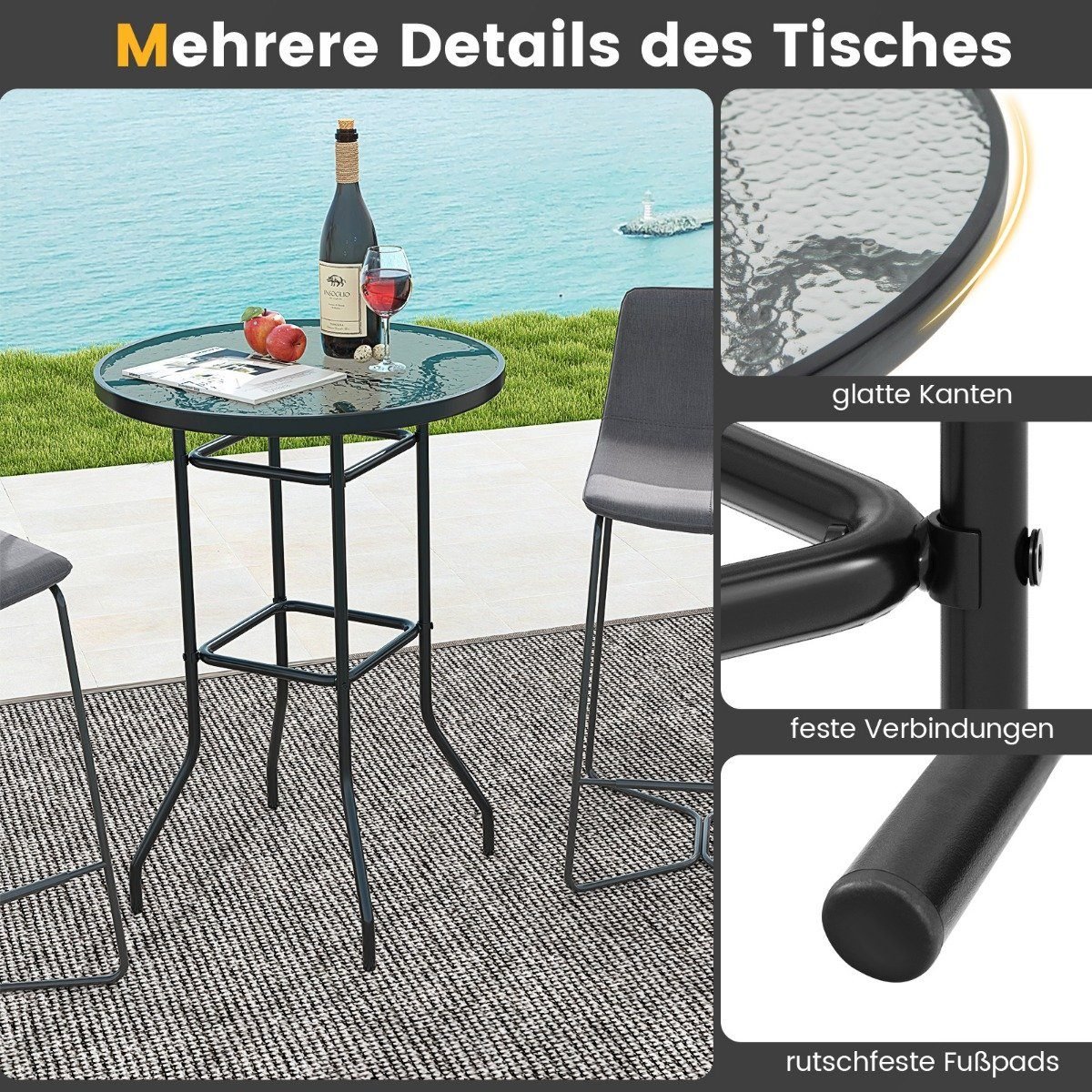 Aukštas lauko staliukas su grūdinto stiklo stalviršiu (Juoda)