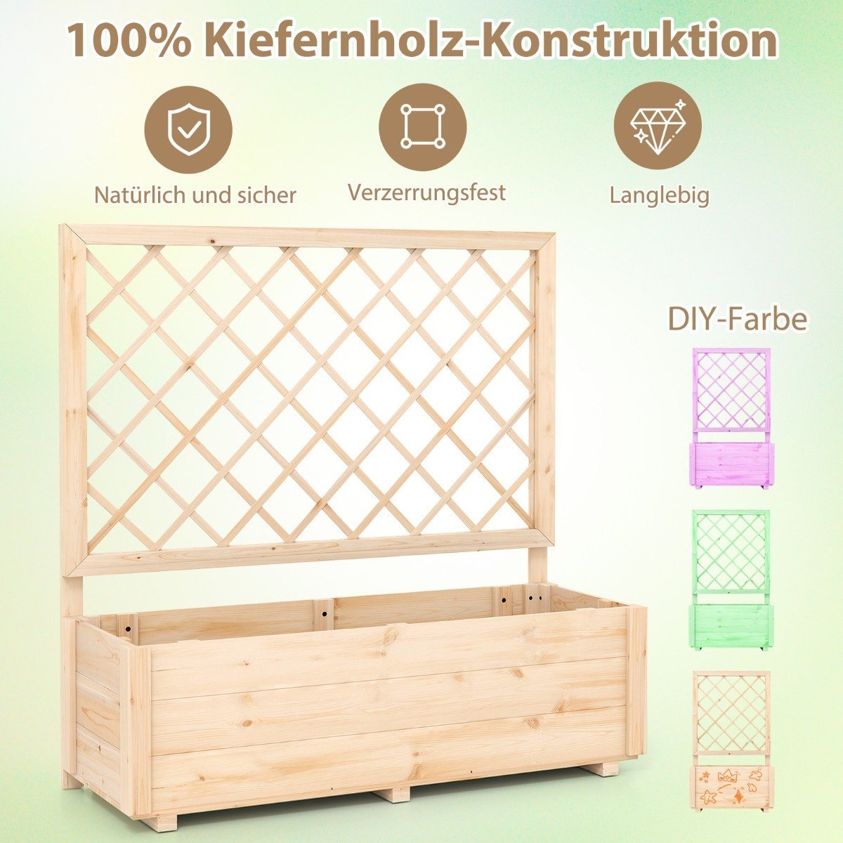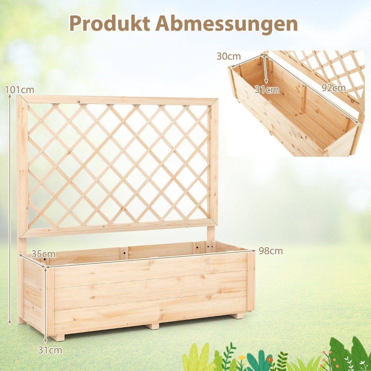 Sukurkite idealią augimo terpę savo augalams su šiuo aukštu lysvės loveliu! Jis ne tik suteikia pakankamai erdvės sodinimui, bet ir turi integruotas atramines groteles, kurios puikiai tinka kylančioms gėlėms ar dekoratyviniams elementams.