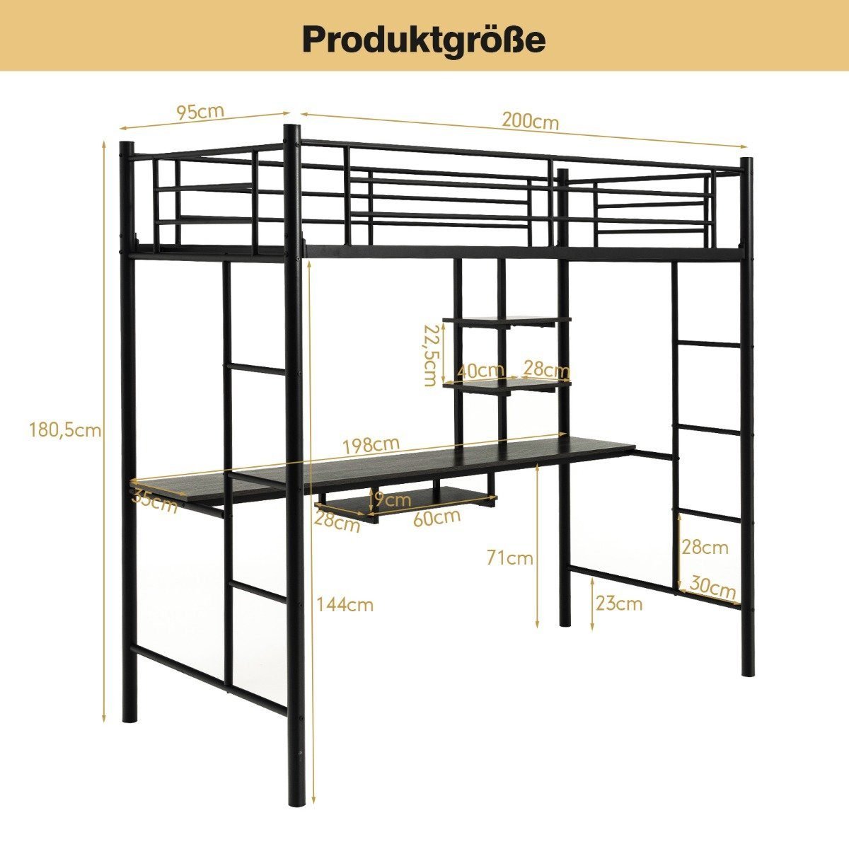 - 1 x Aukštas lovos rėmas su rašomuoju stalu