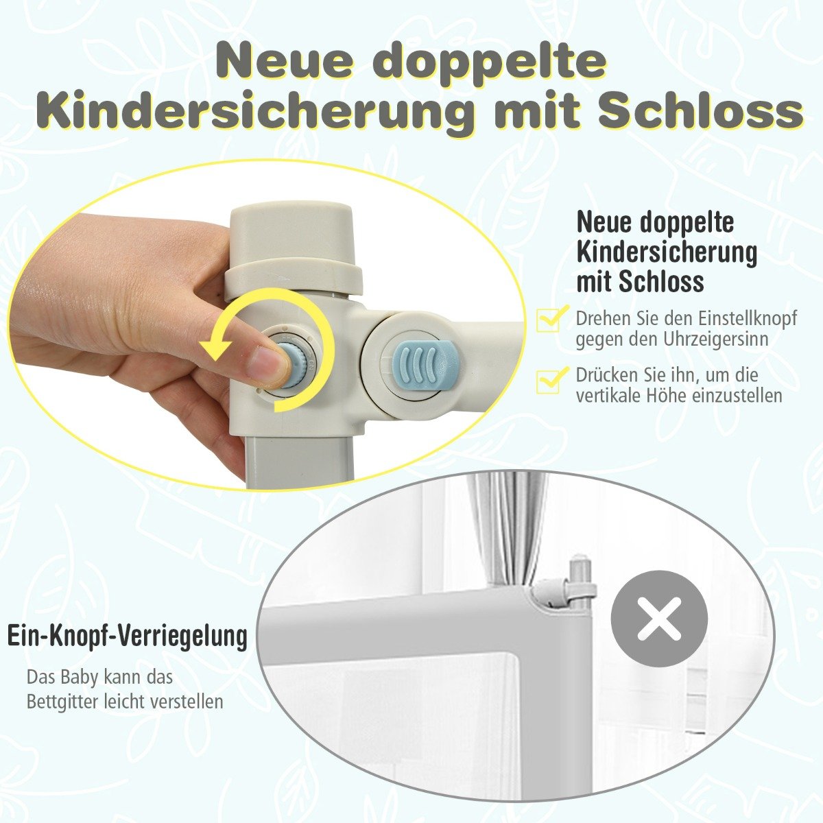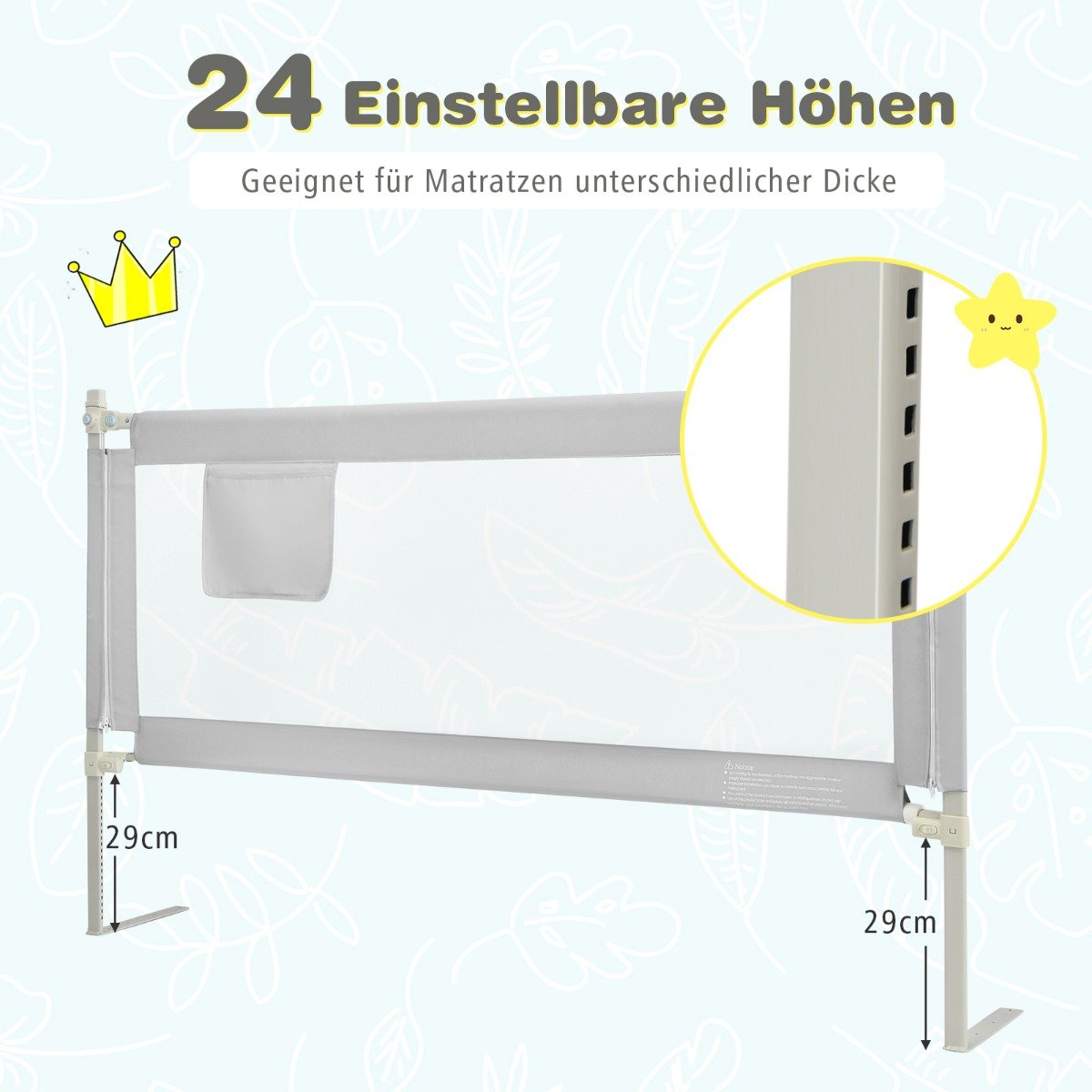Aukštas reguliuojamas vaikiškas lovos apsaugos bortelis su šonine kišene (Pilka)
