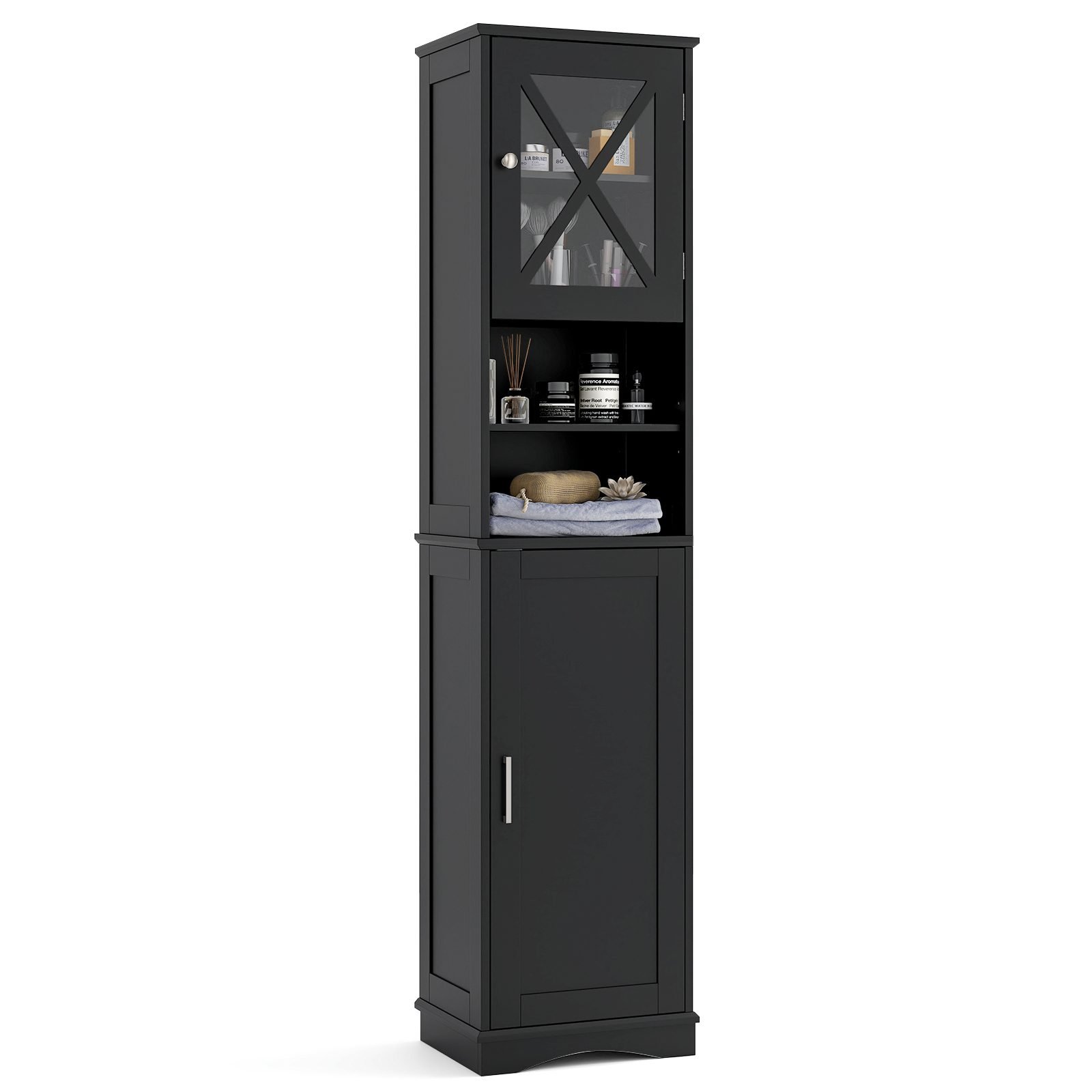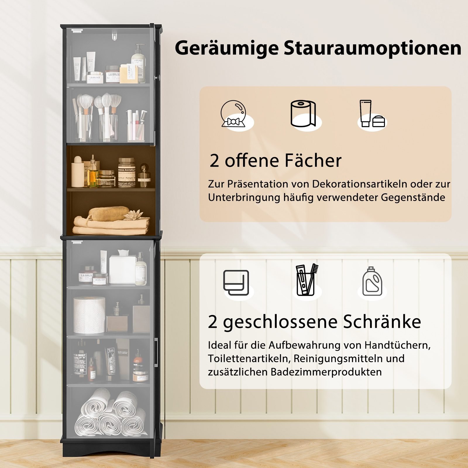 Padidinkite savo erdvę su šiuo aukštu ir siauru vonios kambario baldu, kuris tobulai tiks net ir mažiausiuose kampeliuose. Jame dera atviri ir uždari skyriai, todėl viskas bus tvarkingai sudėta ir lengvai pasiekiama.