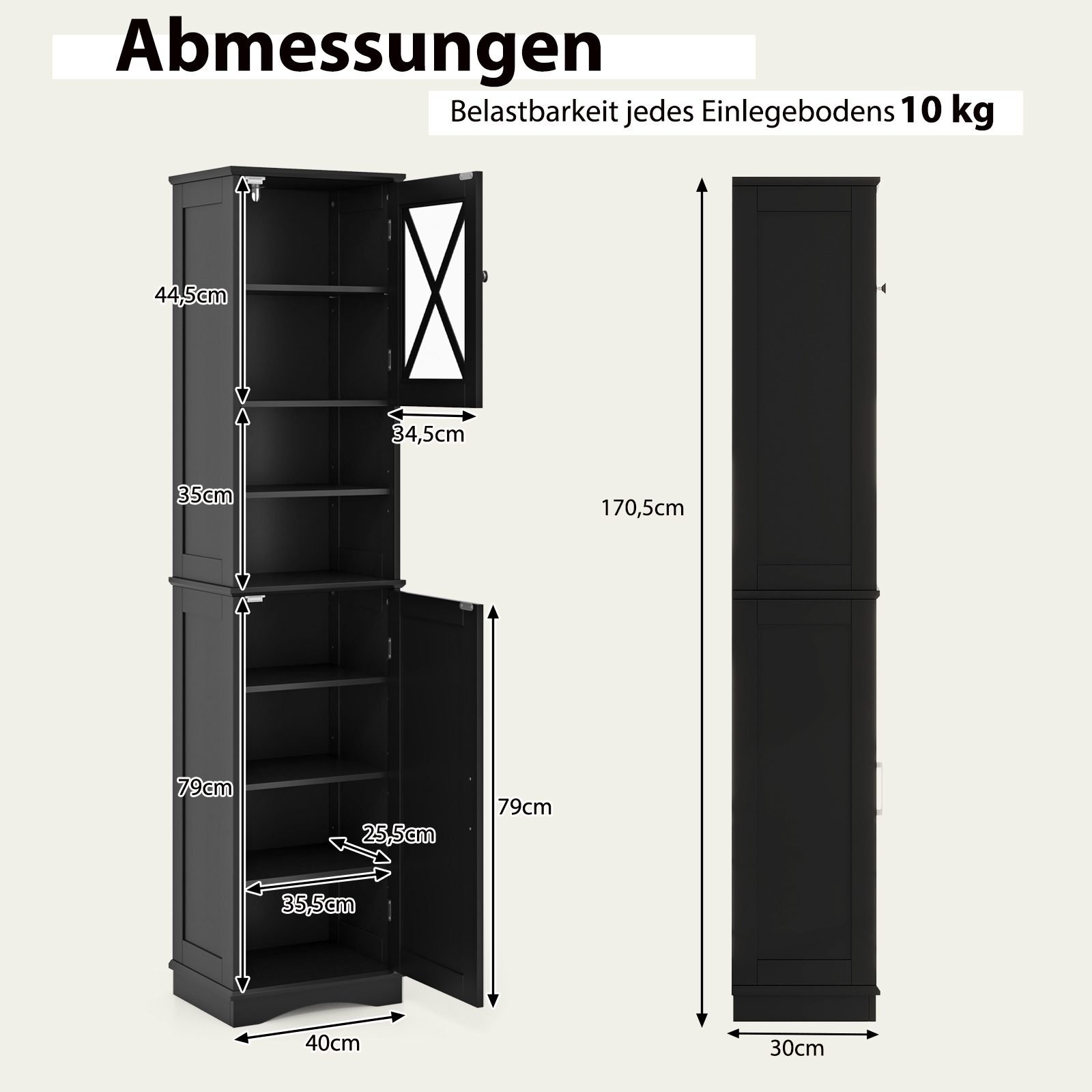 - Bendri matmenys: 40 x 30 x 170,5 cm (Ilgis x Plotis x Aukštis)