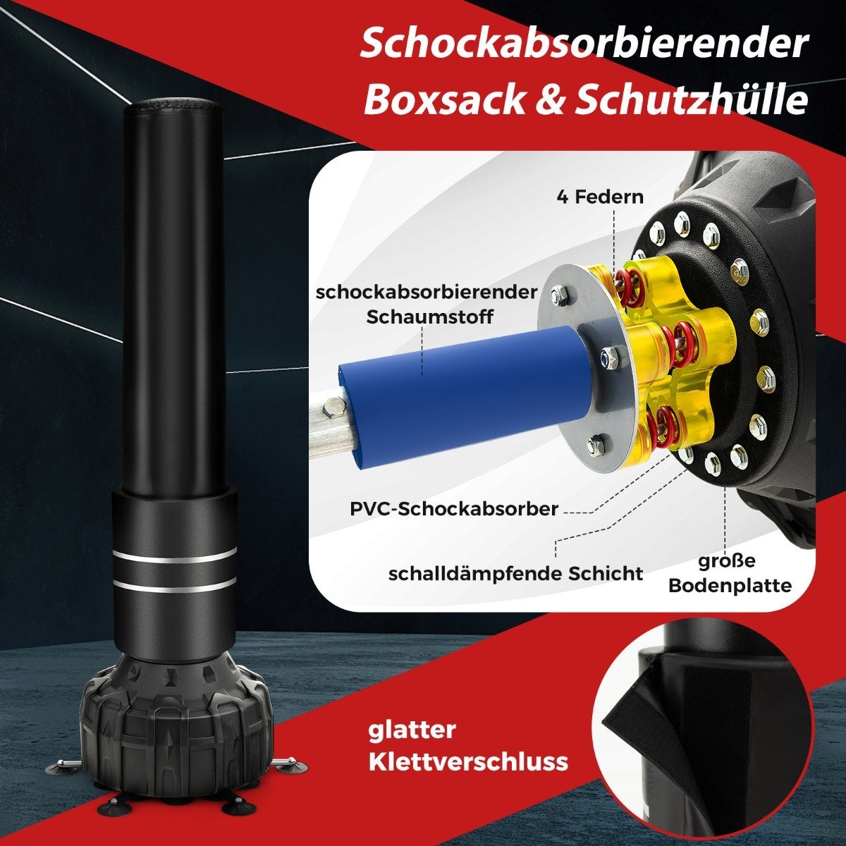 Aukštas stovintis bokso maišas su siurbimo pagrindu ir pirštinėmis (Juoda)