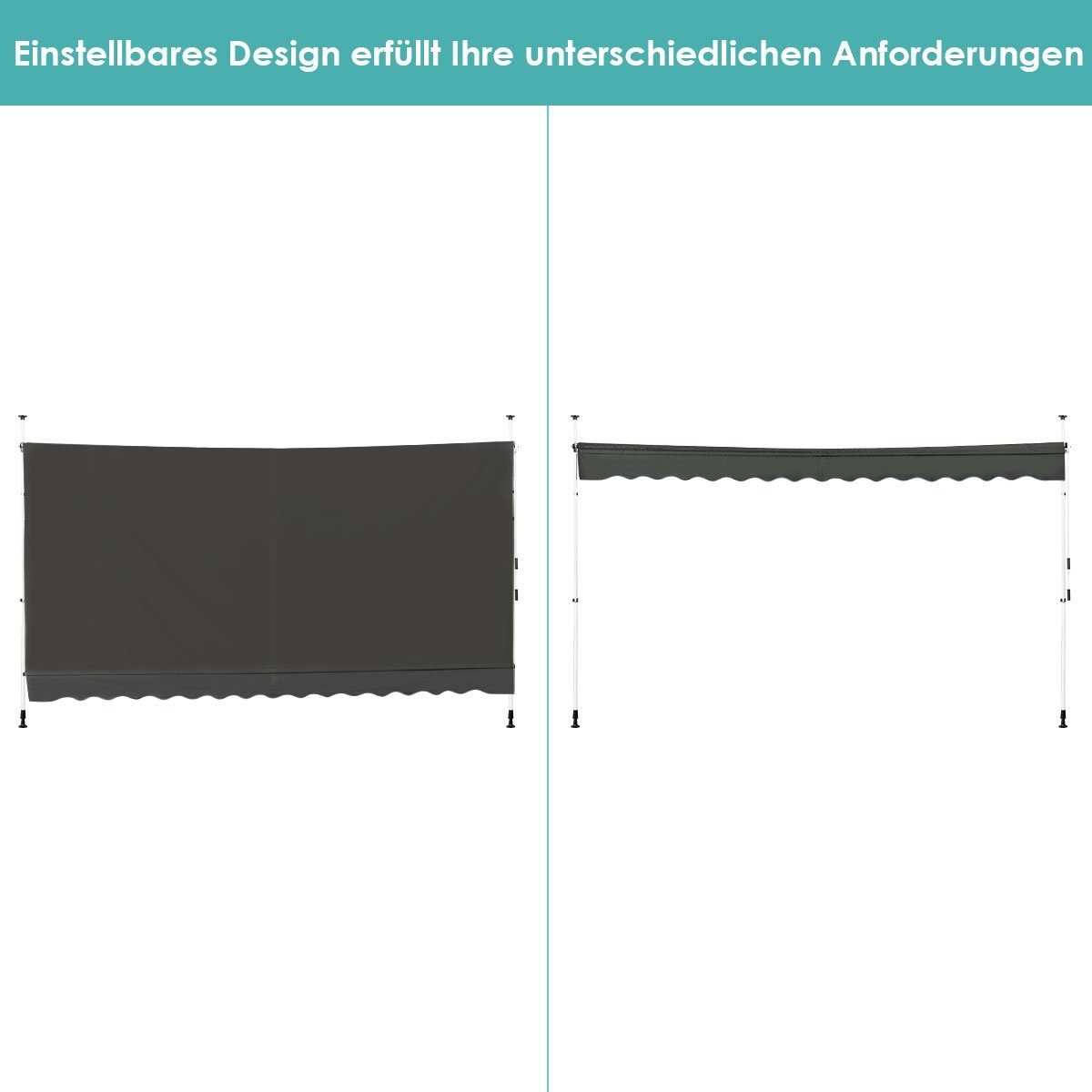 - Reguliuojamas aukštis ir kampas leidžia pritaikyti markizę pagal jūsų poreikius.