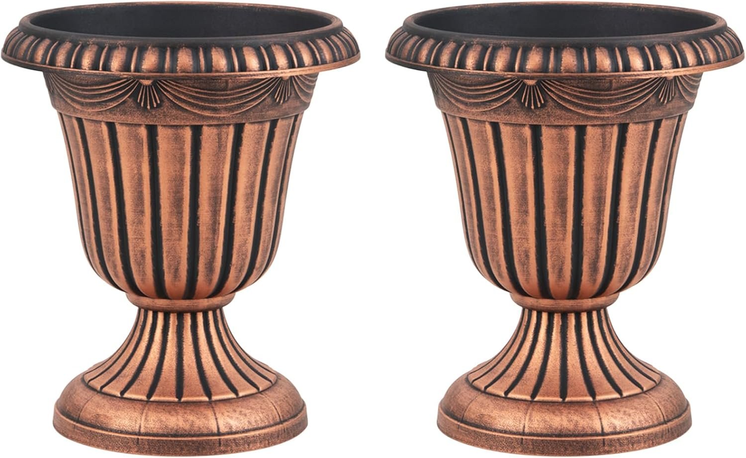 Aukšti lauko vazonai su cokoliu 2 vnt (Bronzos)