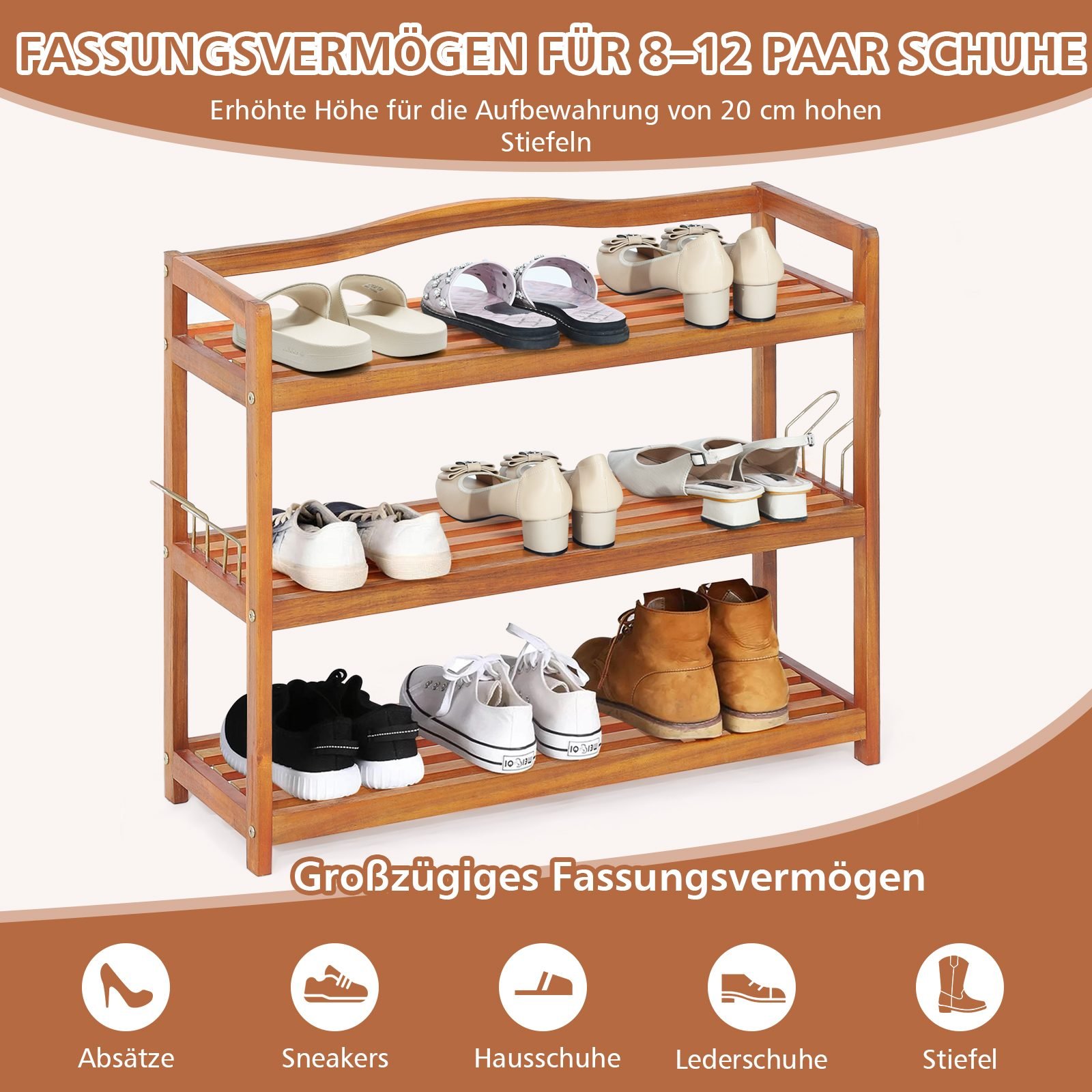 Aukštos kokybės akacijos medienos batų lentyna su šoniniais kabliukais (Raudonai ruda)