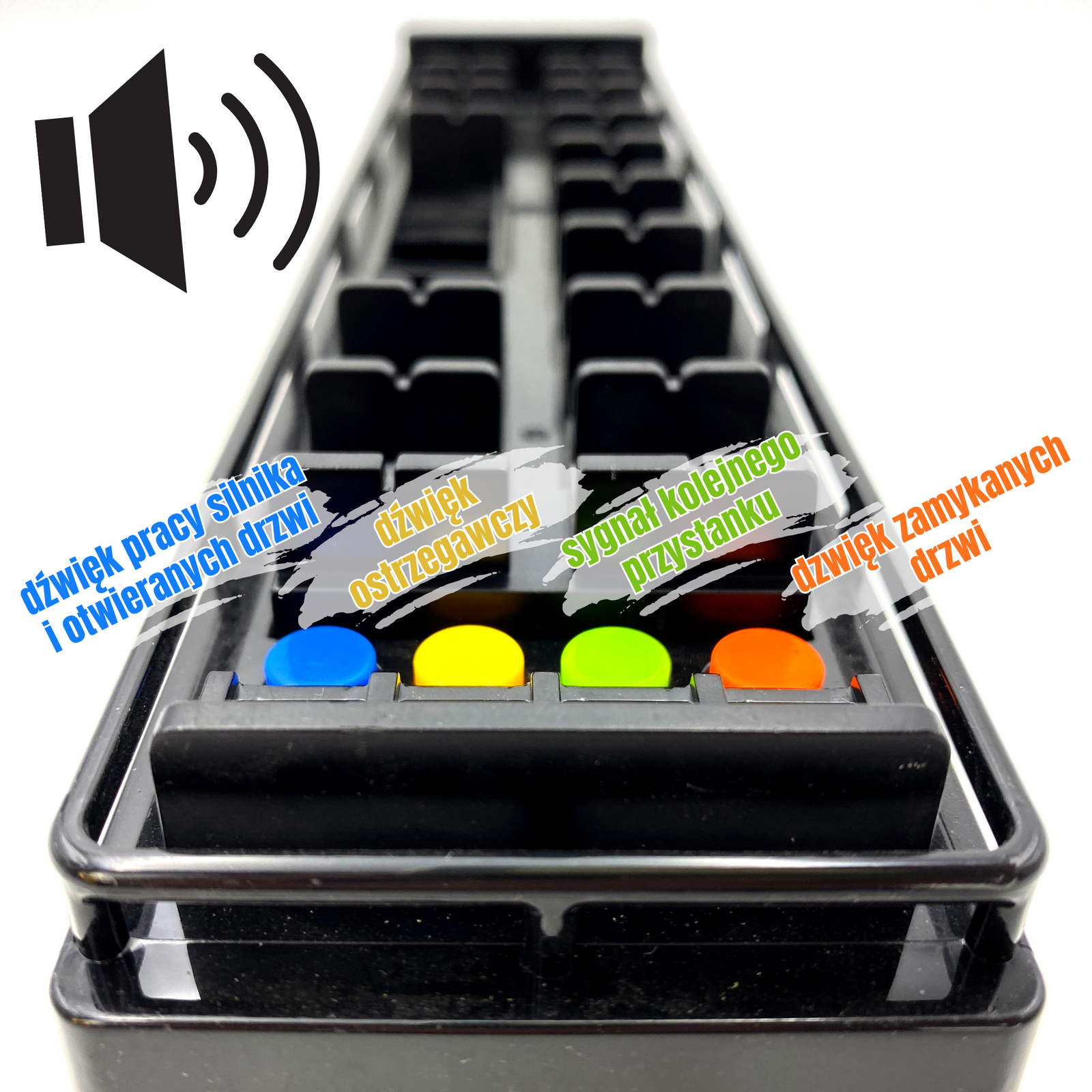- Oranžinis mygtukas: durų uždarymo garsas.