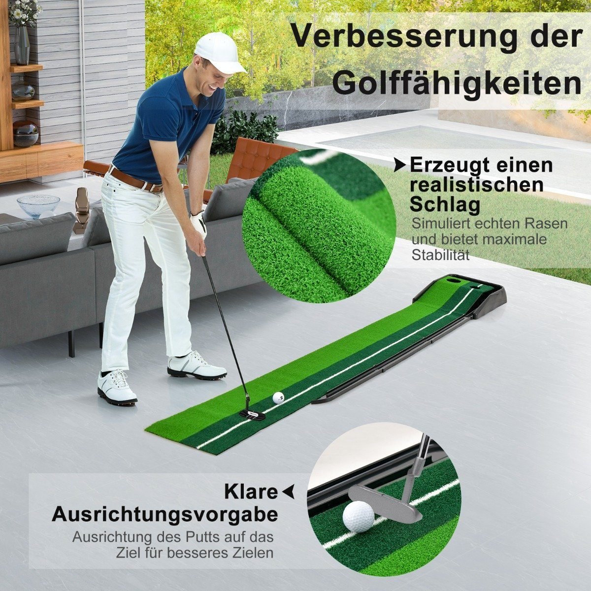 Tobulinkite savo golfo įgūdžius su mūsų universaliu putinimo kilimėliu, tinkamu naudoti tiek lauke, tiek viduje. Pagamintas iš aukštos kokybės PP paviršiaus ir su neslystančiu guminiu pagrindu, šis kilimėlis užtikrina realistišką kamuoliuko riedėjimą ir stabilumą, leidžiantį atlikti tikslias treniruotes.