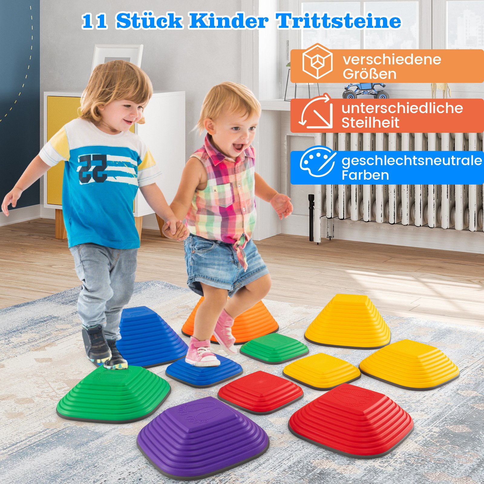 Suteikite vaikams galimybę patirti judėjimo džiaugsmą ir lavinti svarbius įgūdžius su šiais spalvingais balansavimo akmenimis. Sukurti skatinti fizinį aktyvumą ir sensorinį vystymą, jie puikiai tiks tiek pramogoms namuose, tiek lauke.