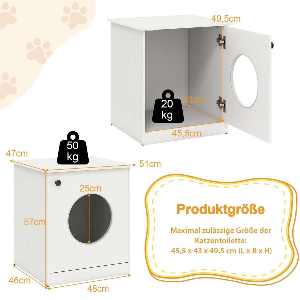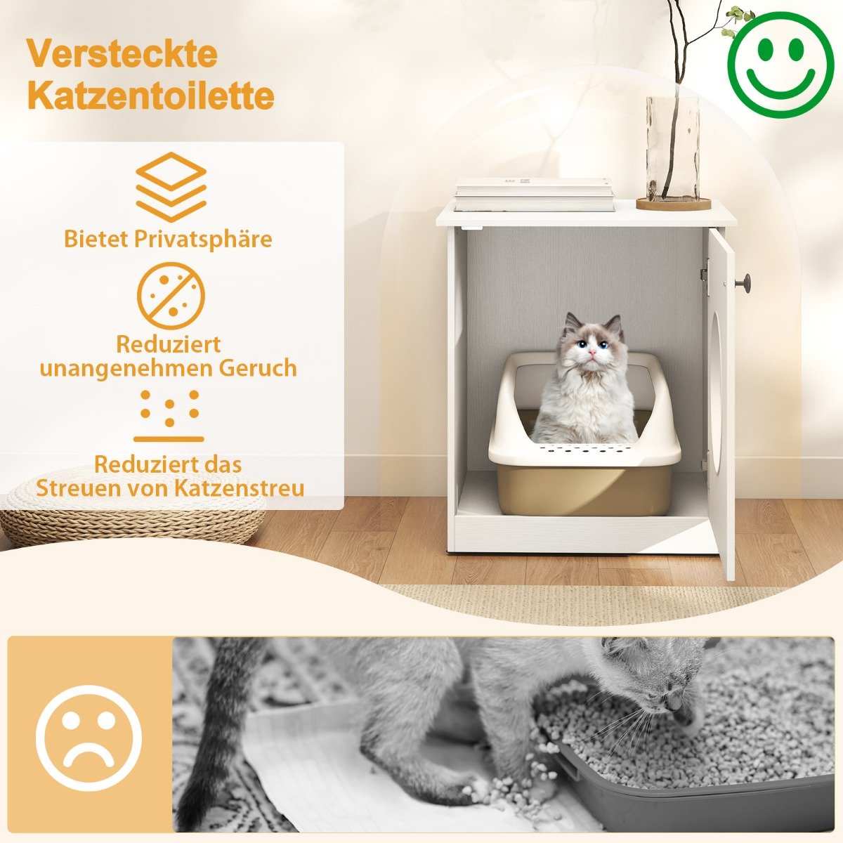Padidinkite savo katės komfortą ir namų jaukumą su šiuo stilingu bei funkcionaliu baldu katės tualetui. Jis puikiai įsilieja į bet kokį interjerą, suteikdamas jūsų katei privačią erdvę, o jums – papildomą vietą daiktams susidėti ar dekoracijoms eksponuoti.