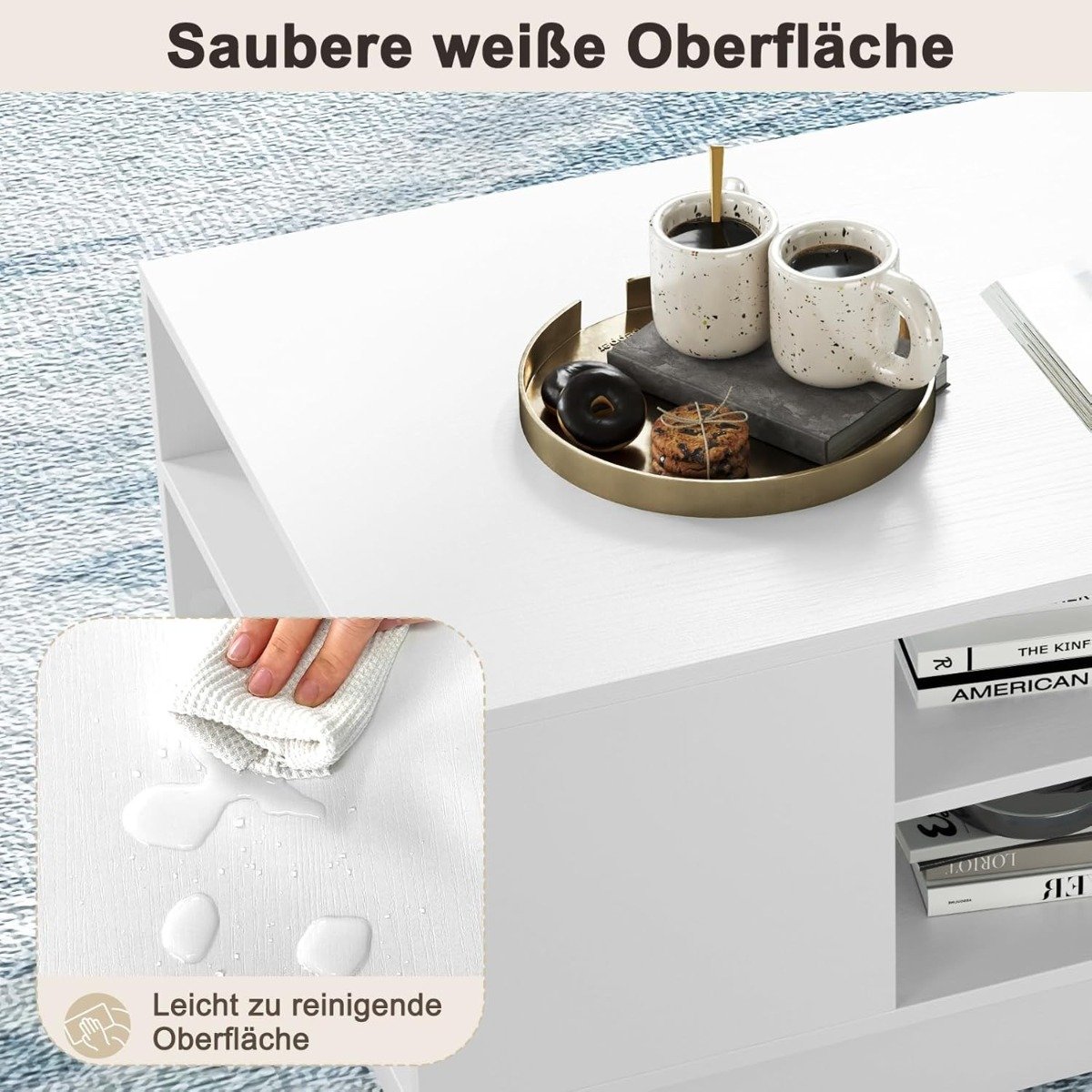 Balto svetainės staliuko su atviromis lentynomis ir talpia saugykla (Balta)