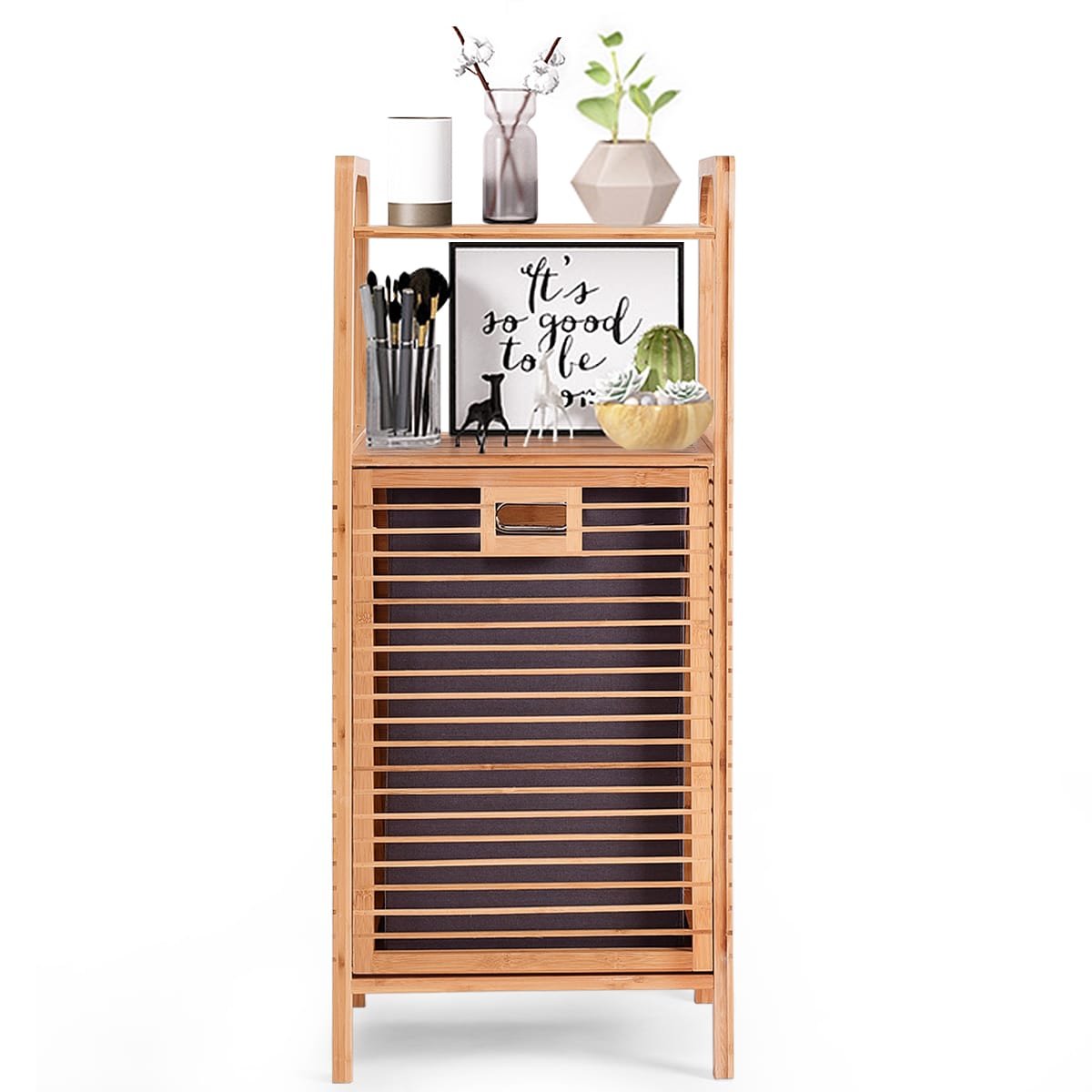 Bambukinė skalbinių dėžė su dviem atviromis lentynomis (Natūrali medžio)