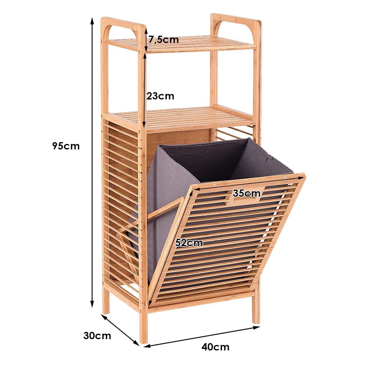 - Matmenys: 40 cm x 30 cm x 95 cm (Ilgis x Plotis x Aukštis)