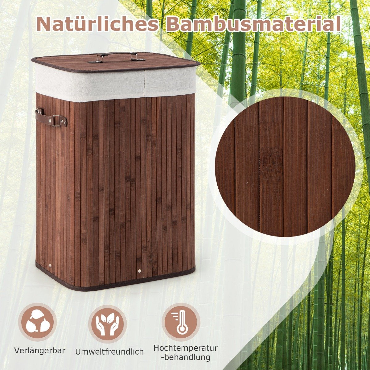 Bambukinis skalbinių krepšys su dangčiu 72 L (Kavos)