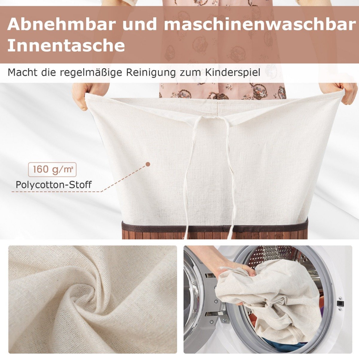 - Prie krepšio tvirtinamas ir lengvai išimamas vidinis maišelis yra tinkamas skalbimui, tad valymas taps ypač patogus.