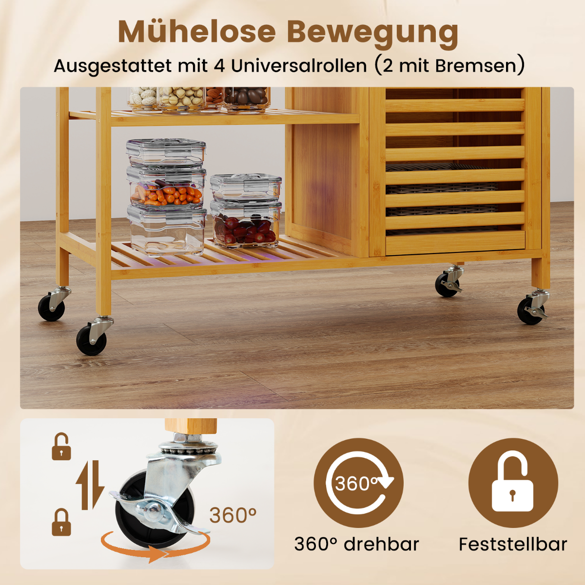 Bambukinis virtuvės vežimėlis su stalčiumi ir lentynomis (Natūrali)
