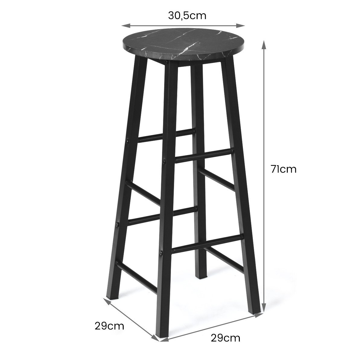 Baro kėdės 71 cm aukščio su atrama kojoms (Juoda)