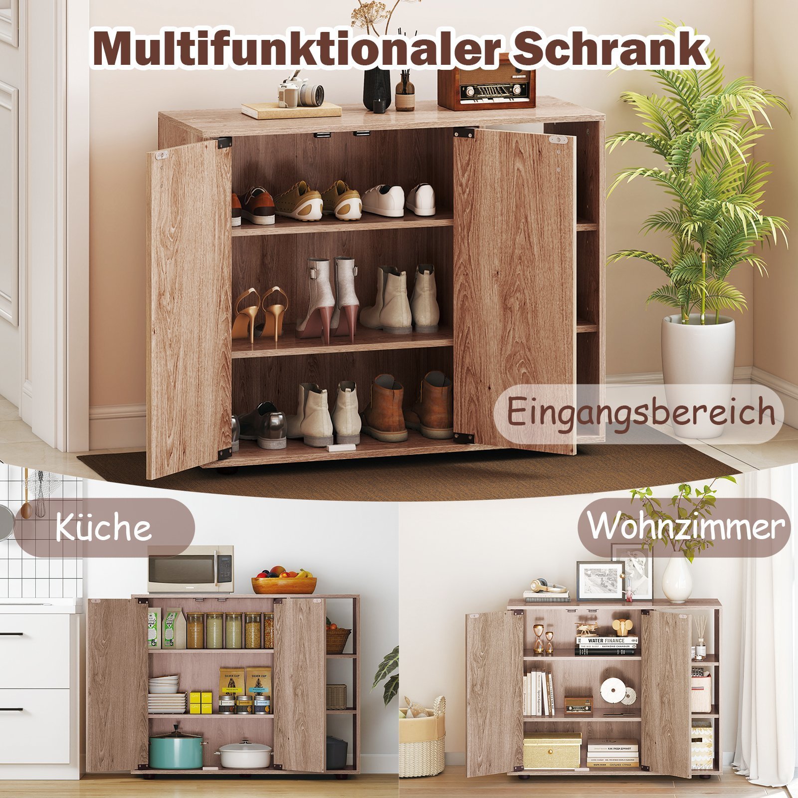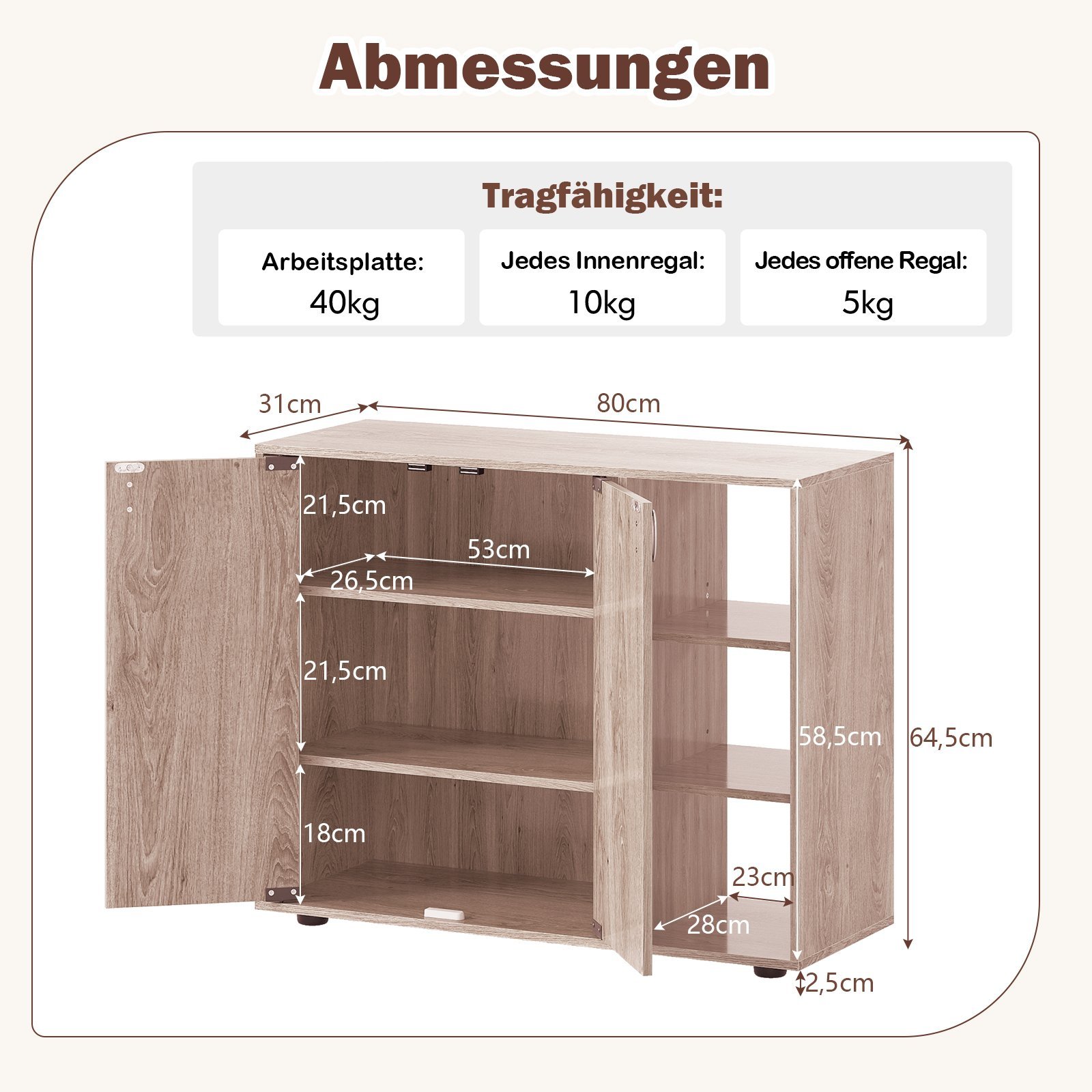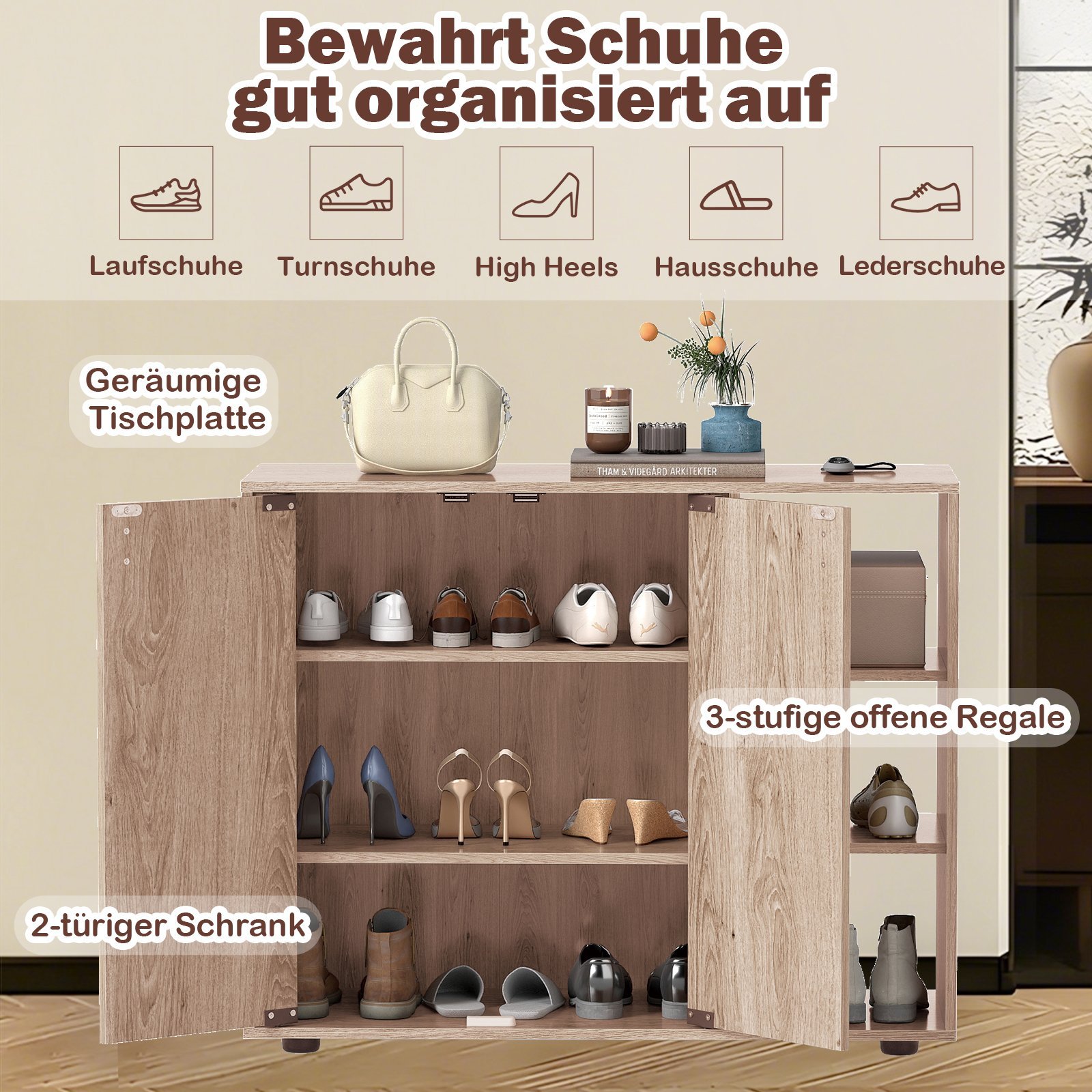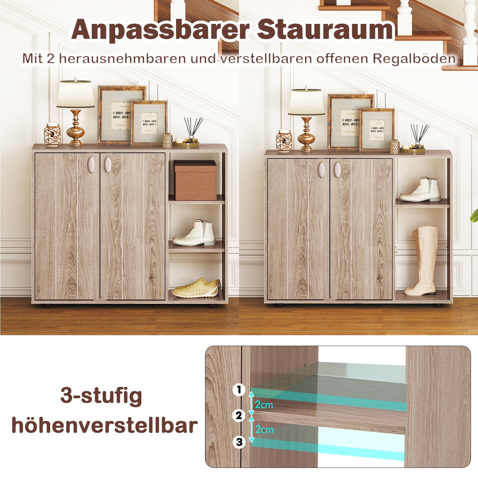 Batų spintelė su 2 durelėmis ir reguliuojamomis atviromis lentynomis (Natūrali)