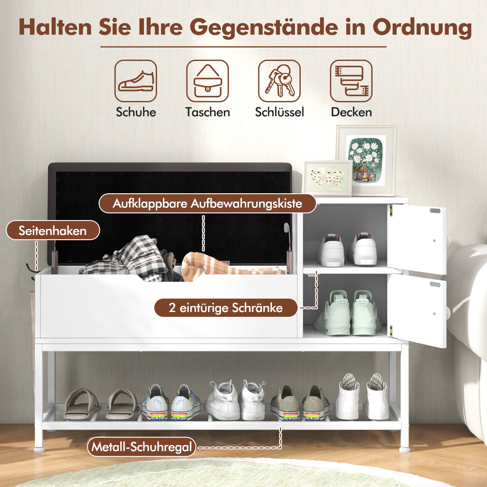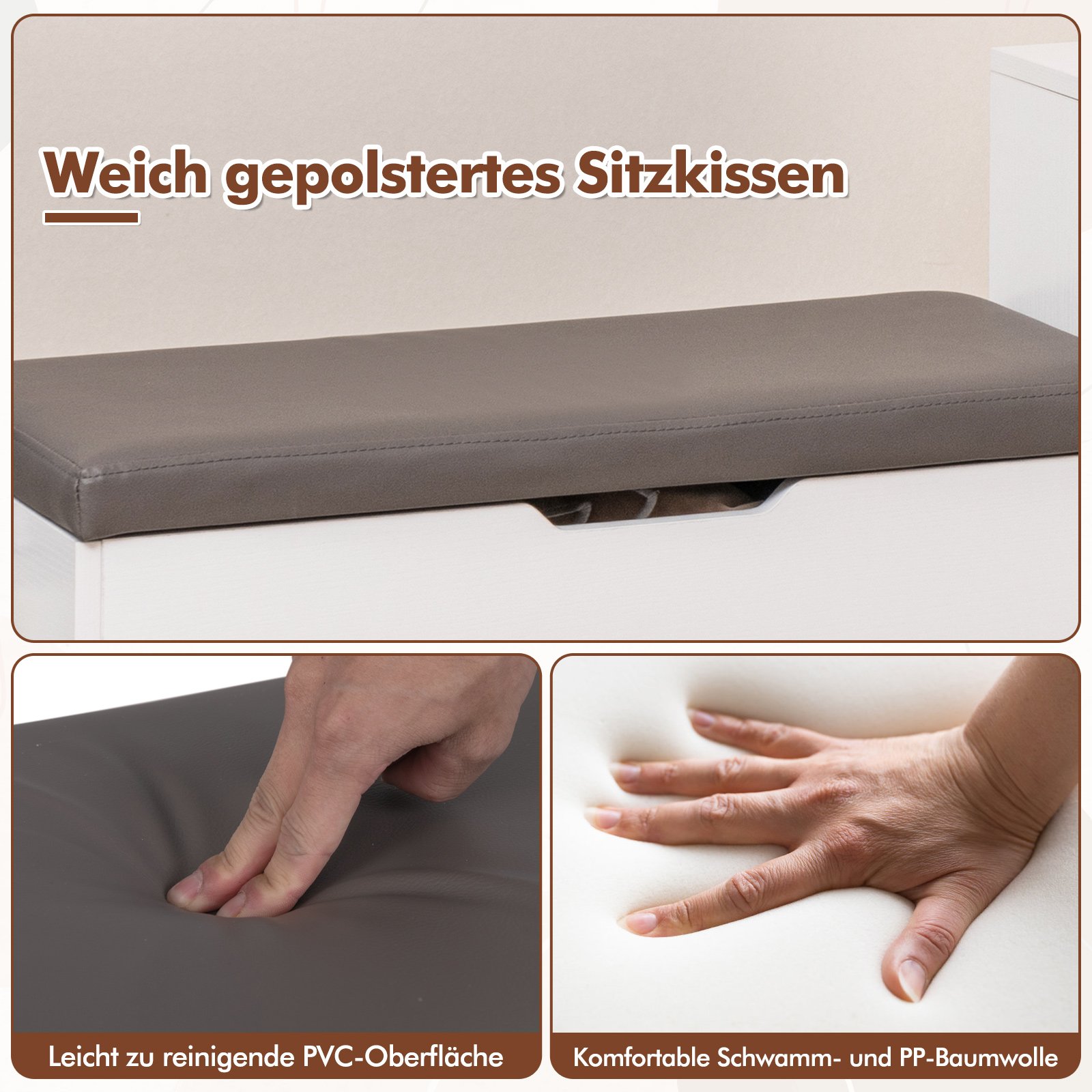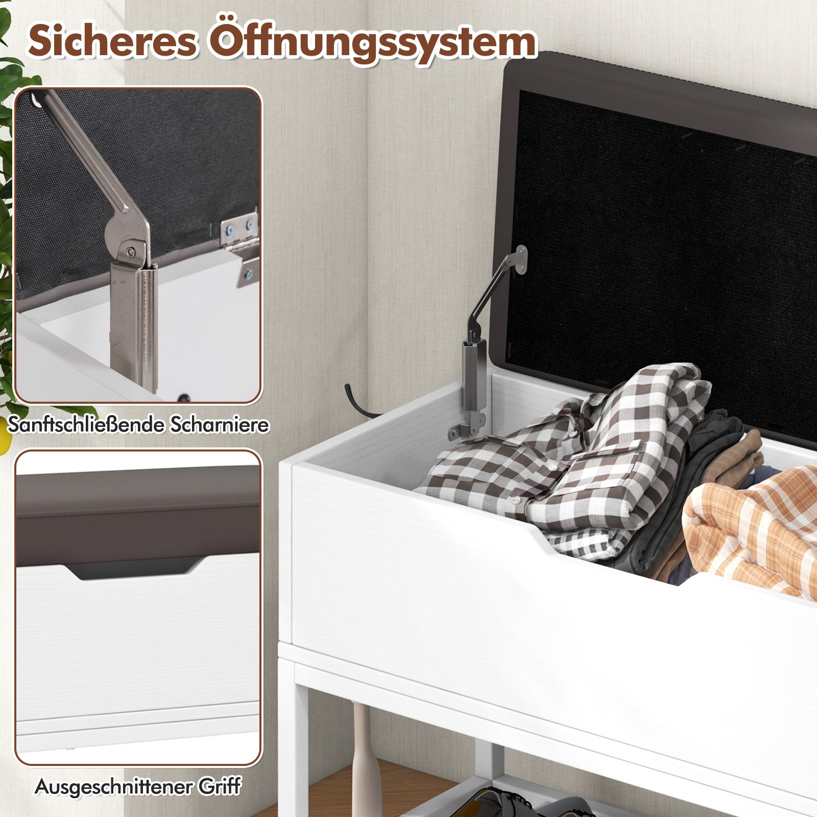 Batų suoliukas su minkšta sėdimąja dalimi ir integruota daiktadėže (Balta)